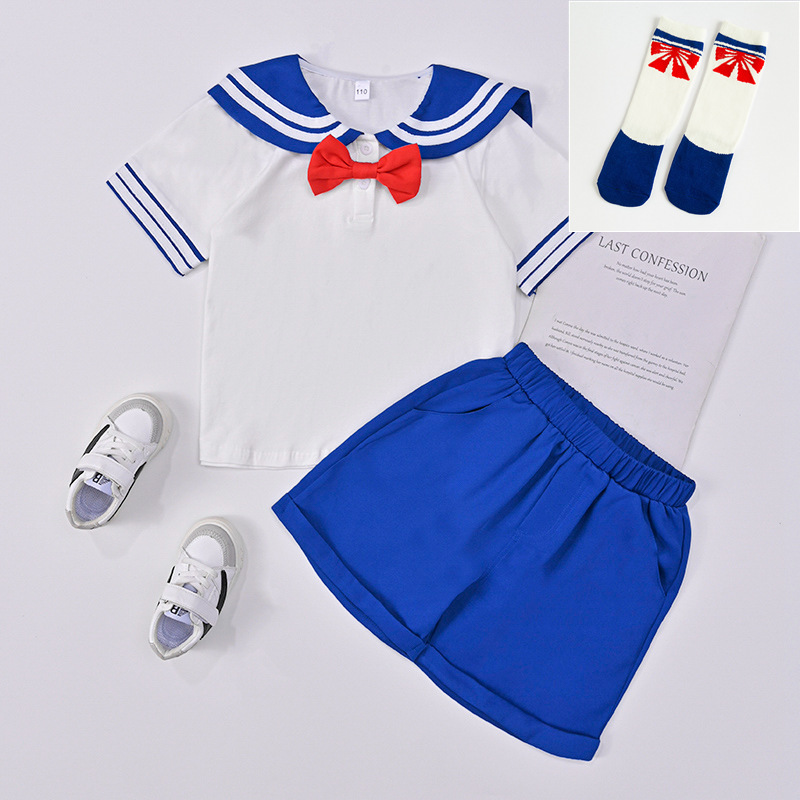 • 여자 반팔 면 세트 (빨간 더블 나비 넥타이 양말 보내기)