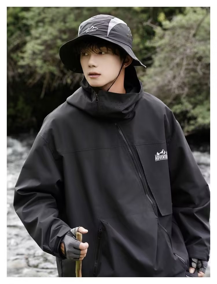 미국식 분위기 기능성 오블리크 지퍼 자켓 여성 가을과 겨울 패션 브랜드 아웃도어 루즈한 후드 등산 자켓