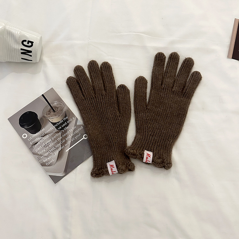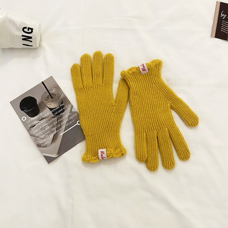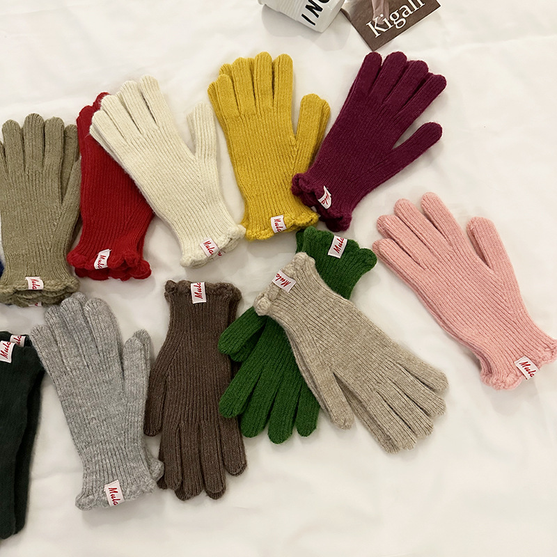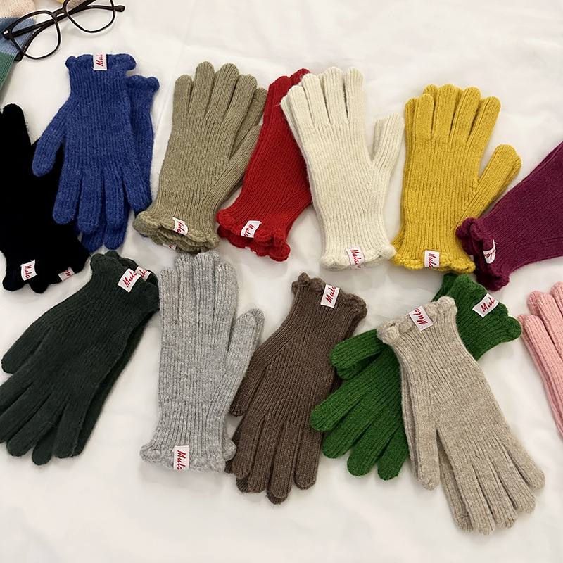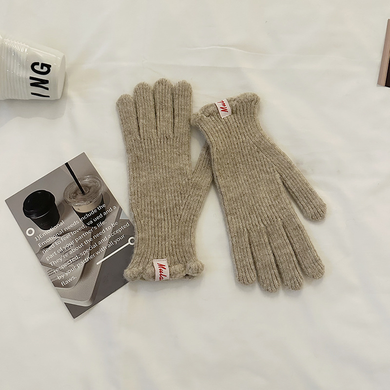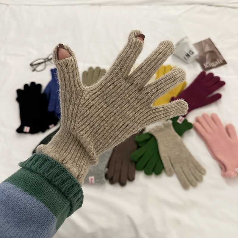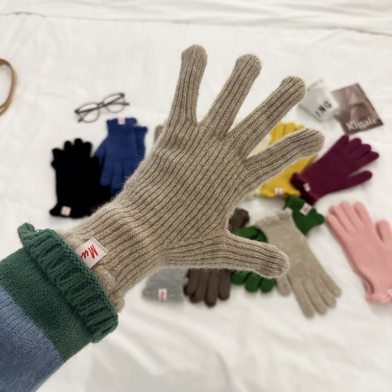 한국 in 단색 양모 니트 장갑 여자의 겨울 터치 스크린 따뜻한 손가락 승마 밀크 티 컬러 울 장갑