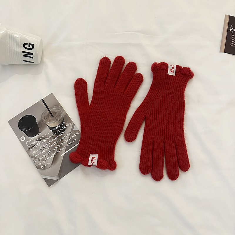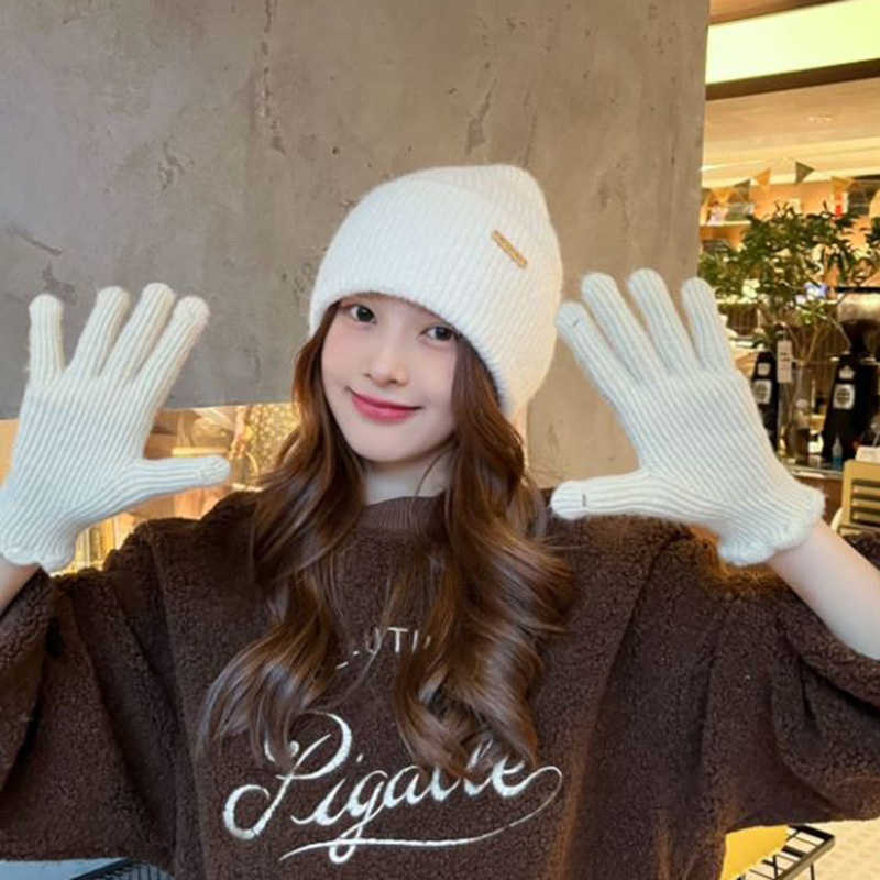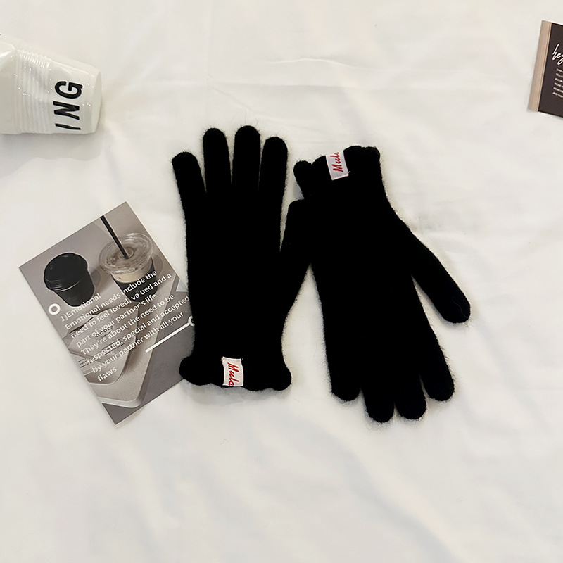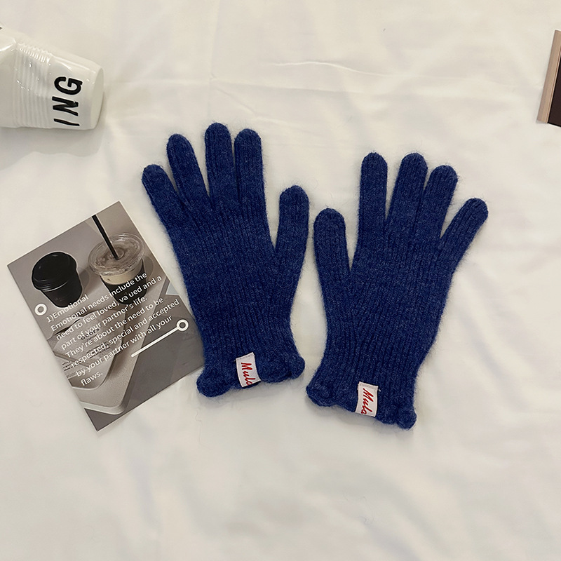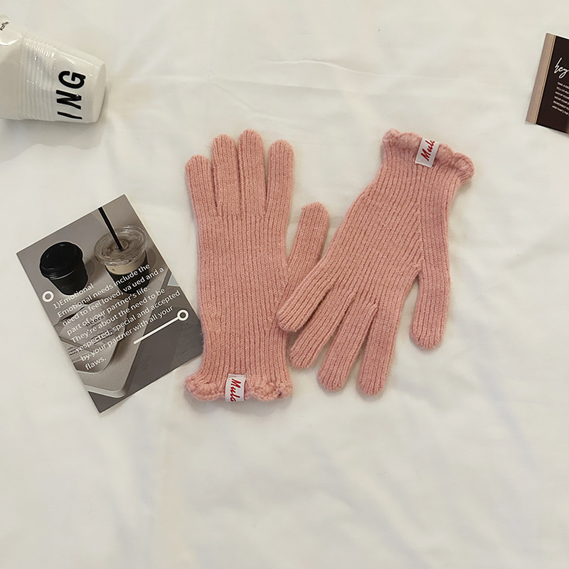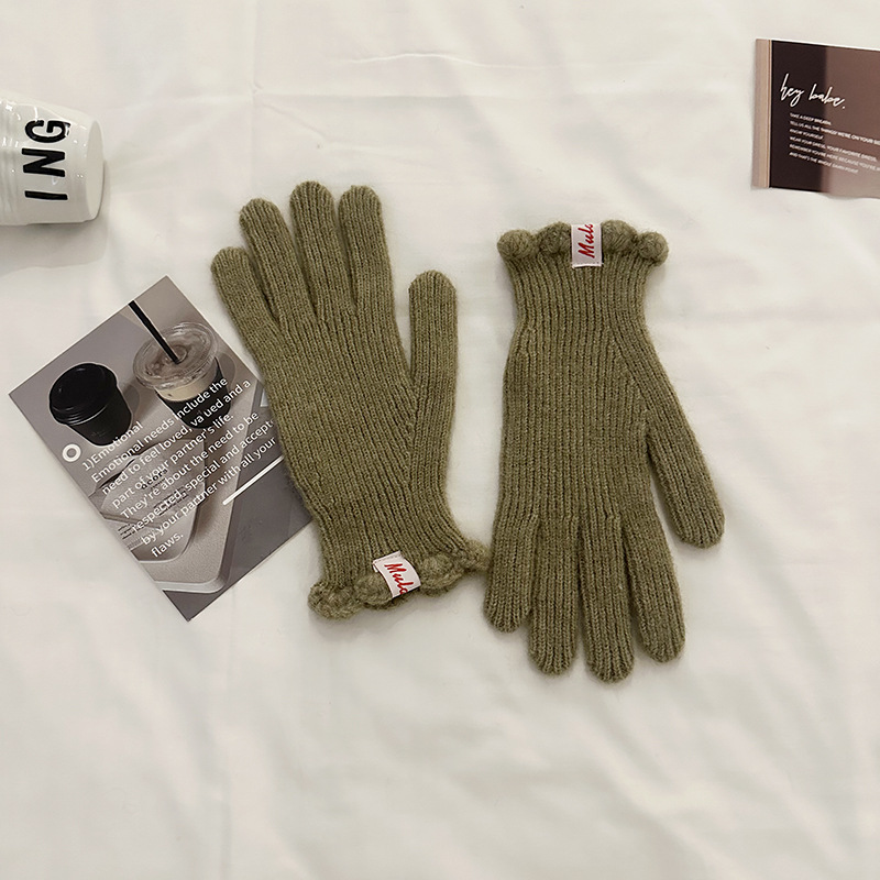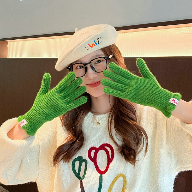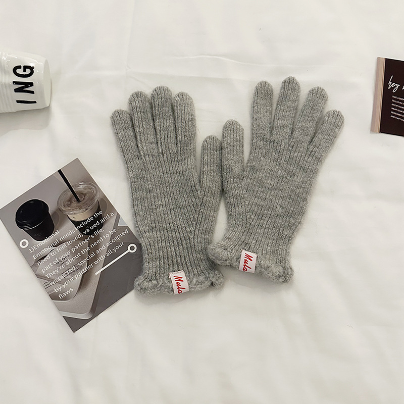 한국 in 단색 양모 니트 장갑 여자의 겨울 터치 스크린 따뜻한 손가락 승마 밀크 티 컬러 울 장갑