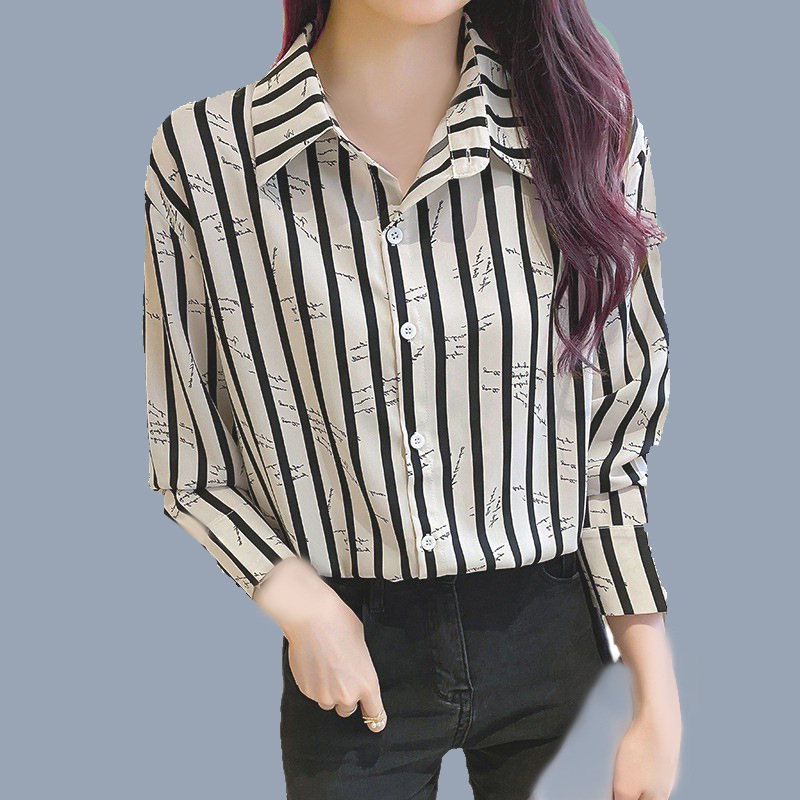 새로운 스트라이프 셔츠 느슨한 캐주얼 슬림 우아한 모든 경기 편안한 패션 여성 셔츠 개인 레터 스트라이프