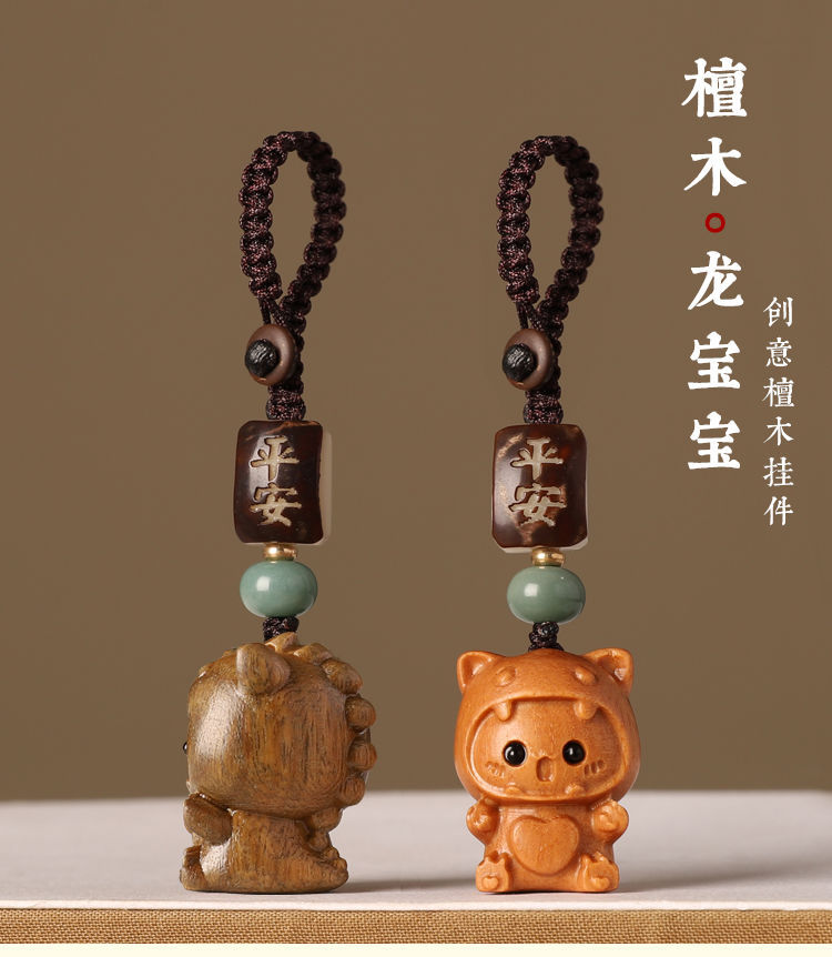 백단향 용자리 아기 자동차 키체인 펜던트 남녀공용 귀여운 키홀더 휴대폰 줄 장식