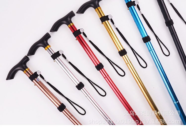 노인용 5 절 접이식 도매 알루미늄 합금 등산 지팡이 휴대용 목발 미끄럼 방지 보행 지팡이 등산 크로스 컨트리 유물스토어 가기