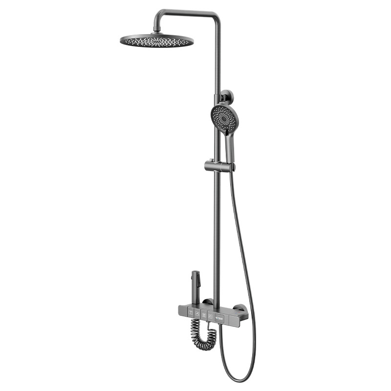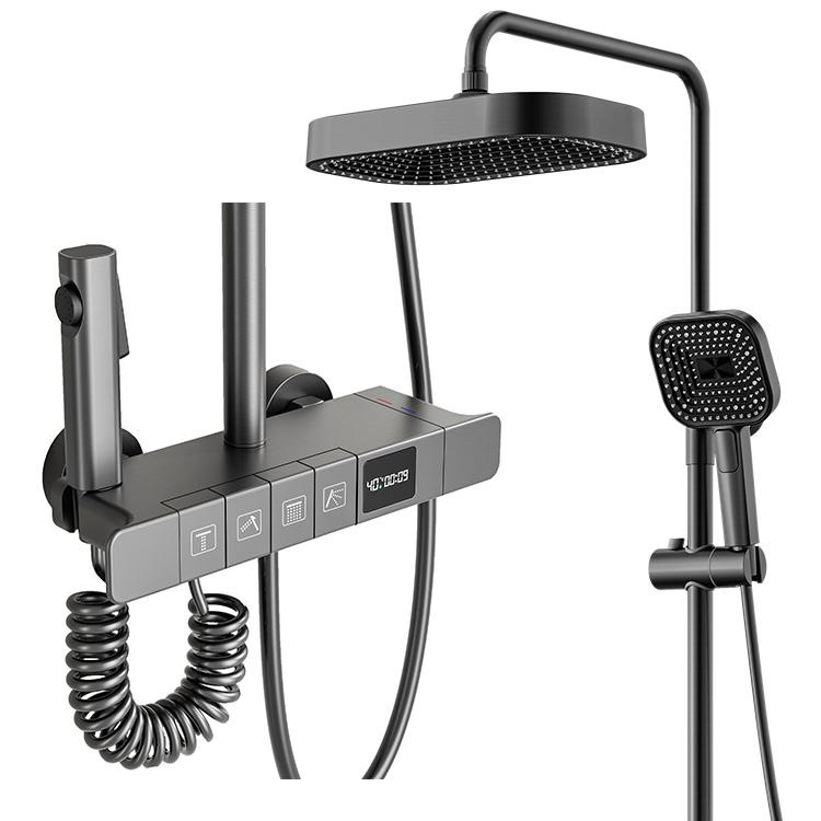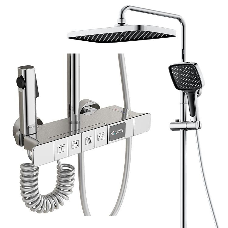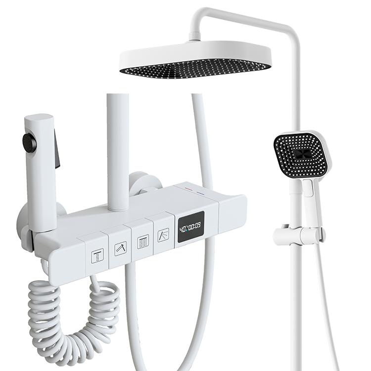 화이트 다기능 물 샤워 샤워 세트 지능형 디지털 디스플레이 독립 버튼 스위치 조정 가능 리프팅 비