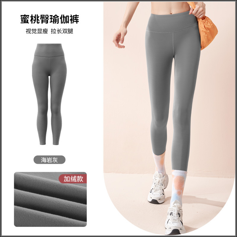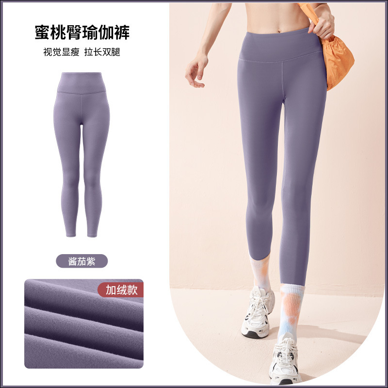 가을과 겨울 기모 요가 바지 traceless 고탄성 피트니스 바지 여성의 높은 허리 엉덩이 리프팅 벨리 타이트 스포츠 타이트 바지스토어 가기