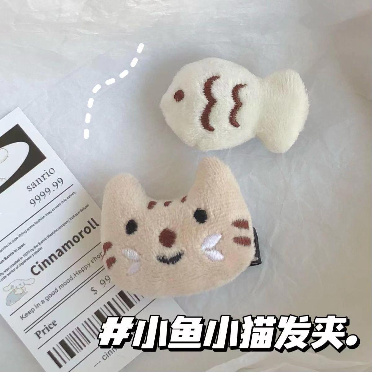 귀여운 봉제 새끼 고양이 물고기 머리핀 소녀 하트 인형 커플 어린이 수업 유치원 선물 달콤한 머리 액세서리스토어 가기