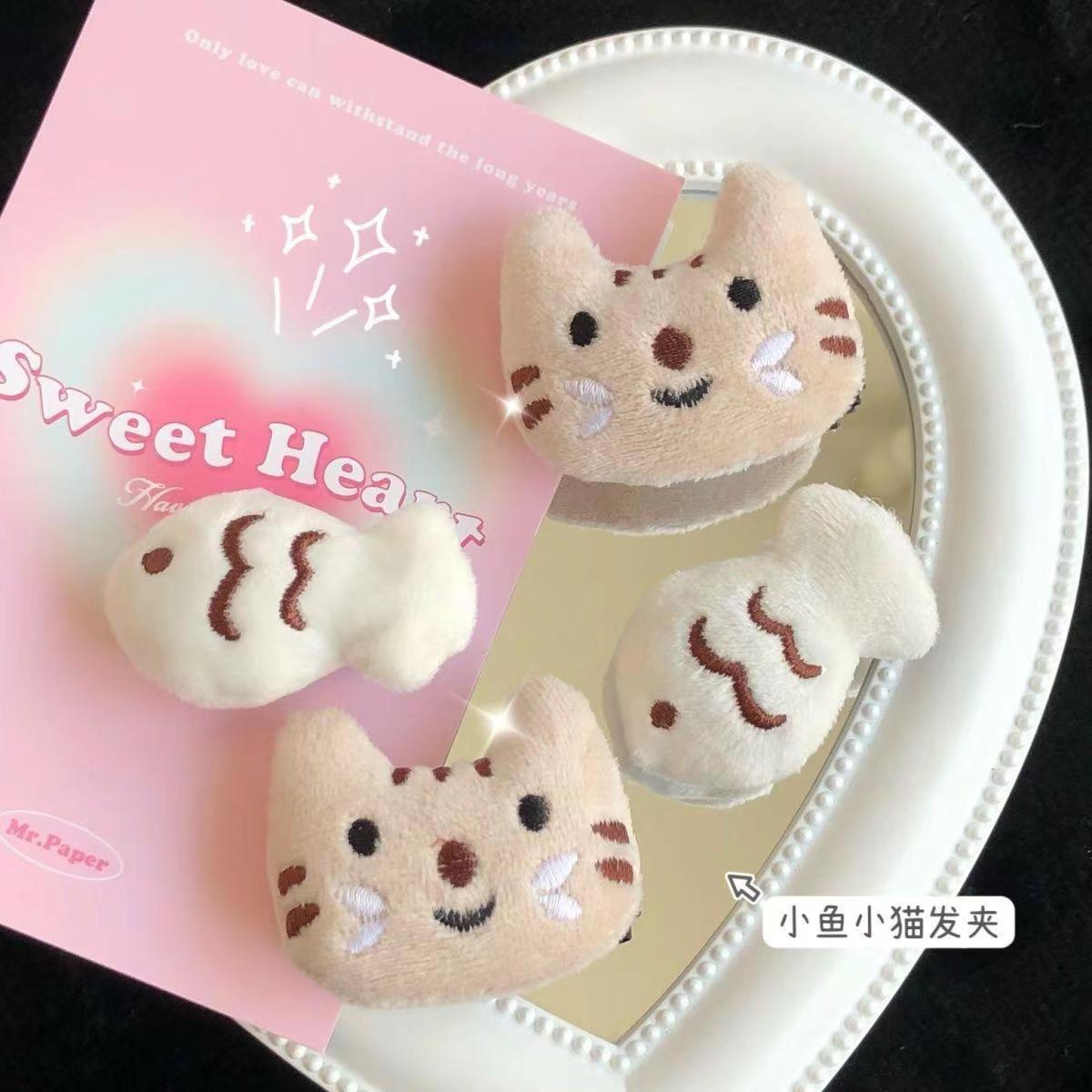 귀여운 봉제 새끼 고양이 물고기 머리핀 소녀 하트 인형 커플 어린이 수업 유치원 선물 달콤한 머리 액세서리