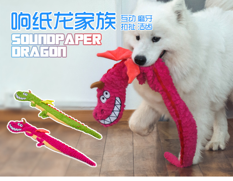Qmonster 소리 나는 종이 드래곤 개 인터랙티브 풀 장난감 크고 작은 개 줄다리기 음성 물기 방지 공룡 개 장난감