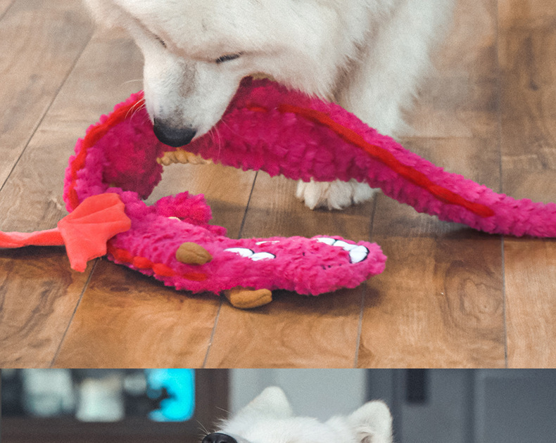 Qmonster 소리 나는 종이 드래곤 개 인터랙티브 풀 장난감 크고 작은 개 줄다리기 음성 물기 방지 공룡 개 장난감스토어 가기