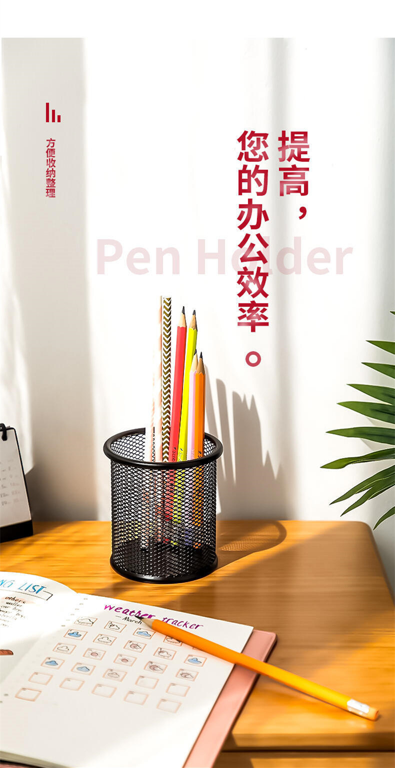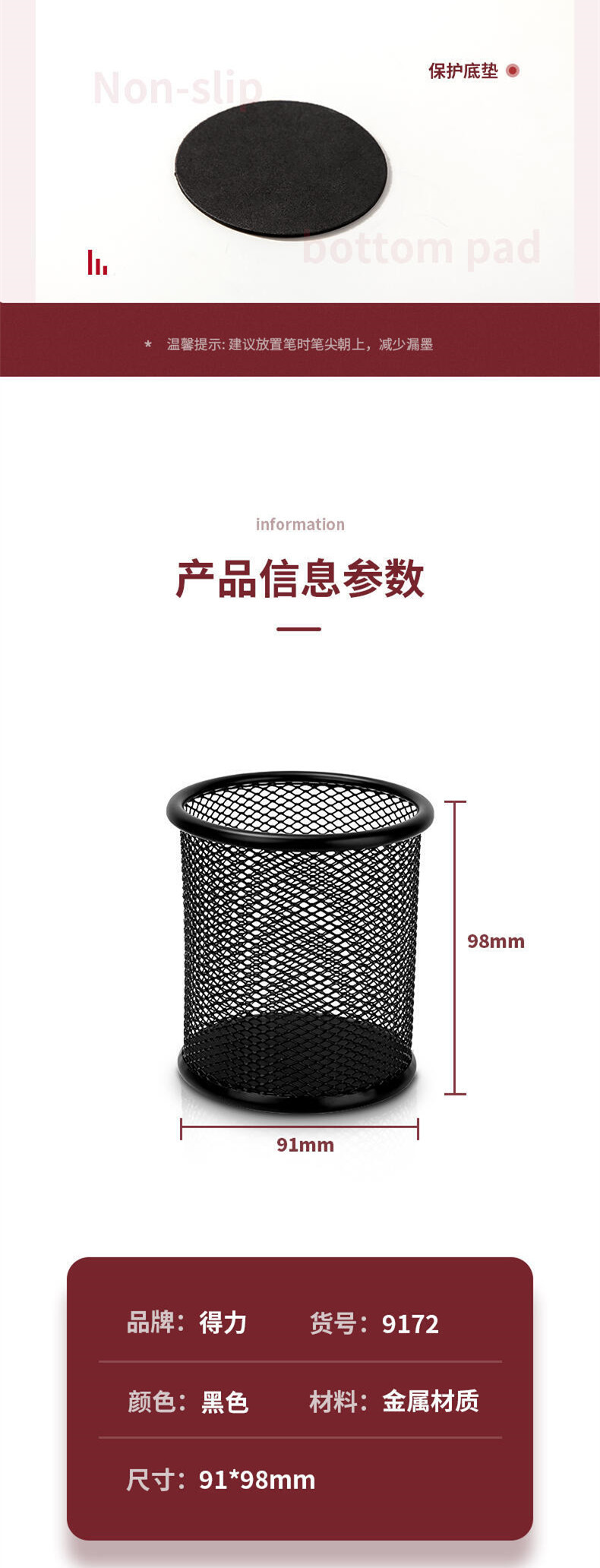 델리 9172 펜 코너 금속 메쉬 라운드 펜 코너 간단한 패션 사무실 데스크탑 다기능 스토리지 박스 펜 코너