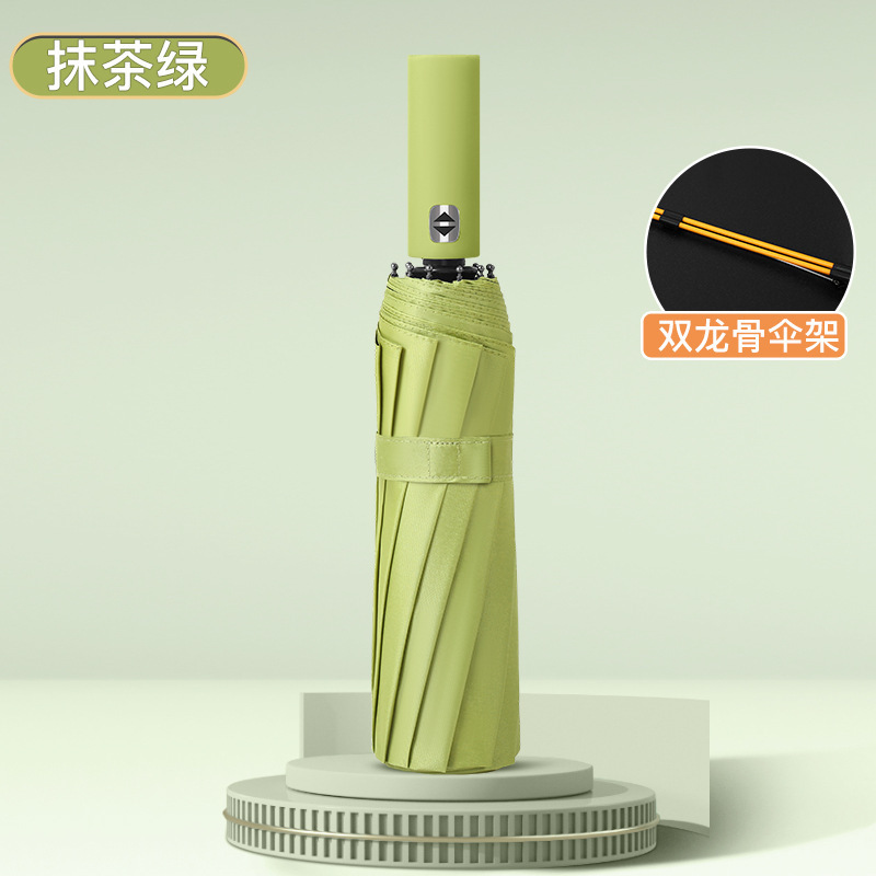 24 뼈 더블 드래곤 뼈 검은 접착제 태양 보호 햇빛 우산 여성 자동 3 접는 사업 써니 우산 광고 우산 인쇄스토어 가기