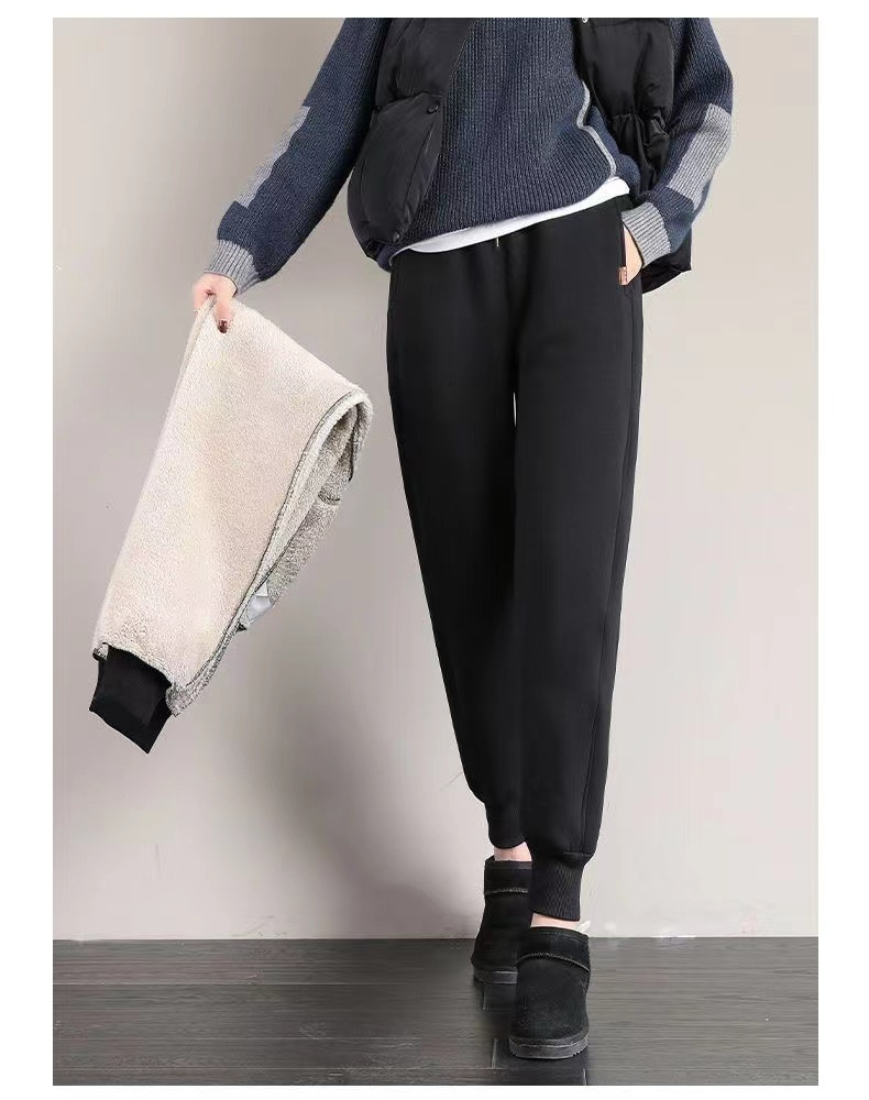 여성을위한 기모 두꺼운 스포츠 바지 플러스 사이즈 느슨한 발목을 묶은 캐주얼 코튼 스웨트 팬츠 가을과 겨울 람스울 아우터 팬츠스토어 가기