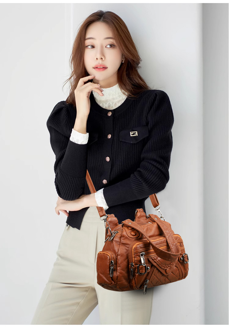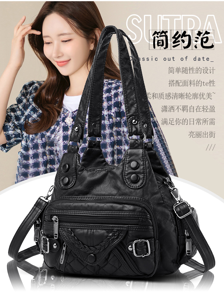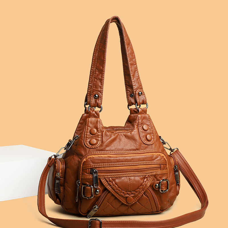 2024 단일 어깨 메신저 가방 중년 소프트 가죽 여성 가방 어머니 가방 대용량 캐주얼 가방 레트로 멀티 레이어스토어 가기
