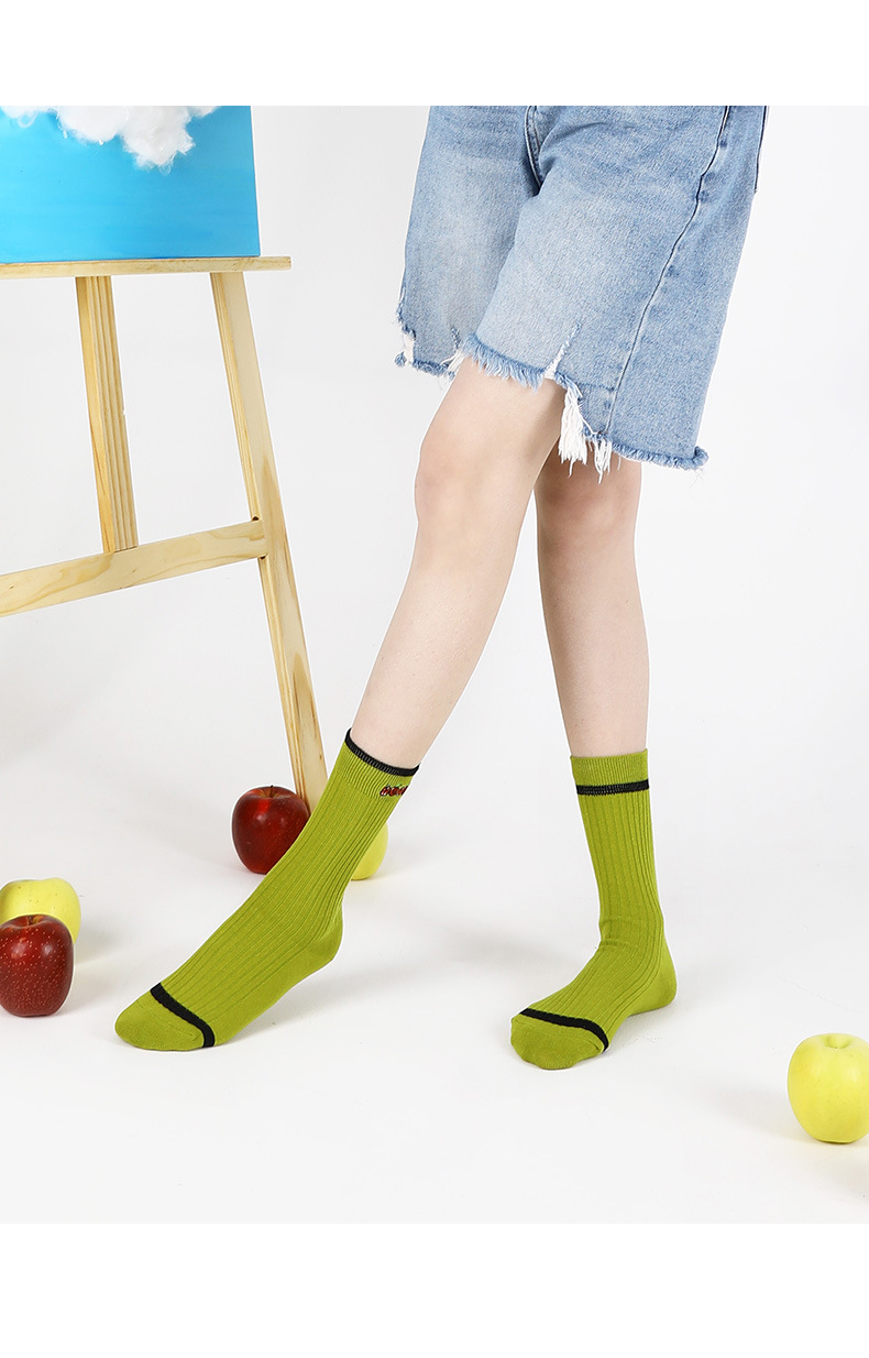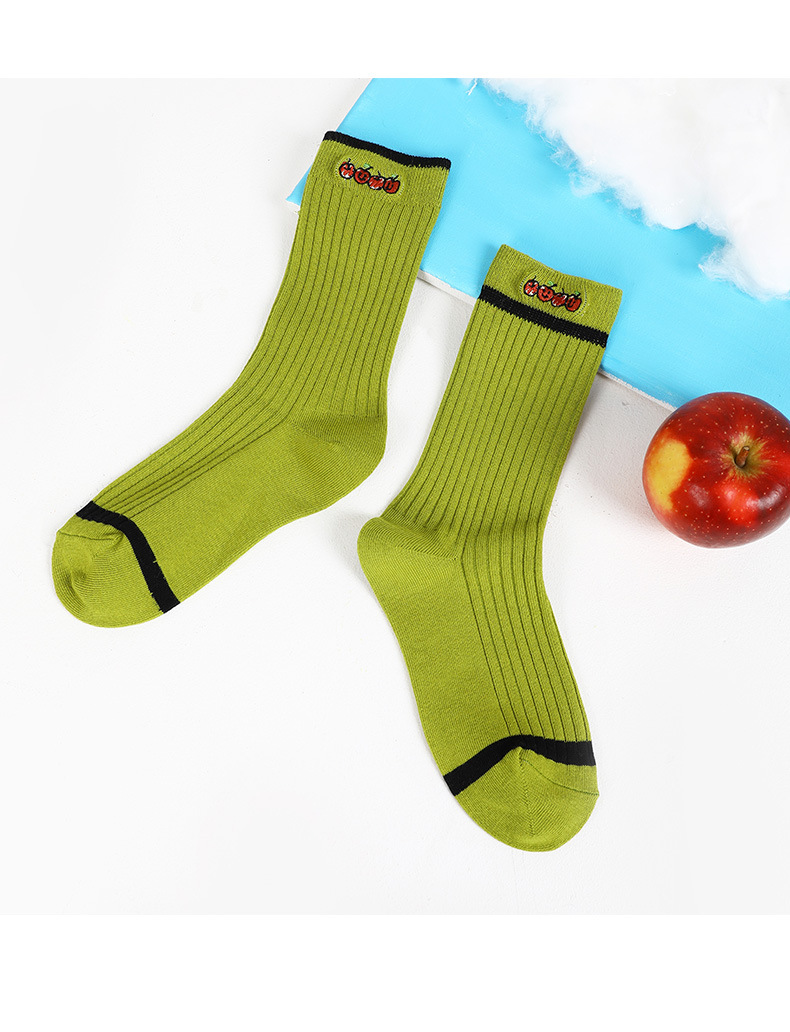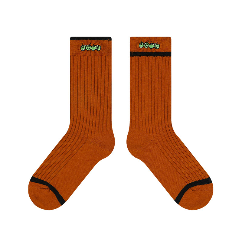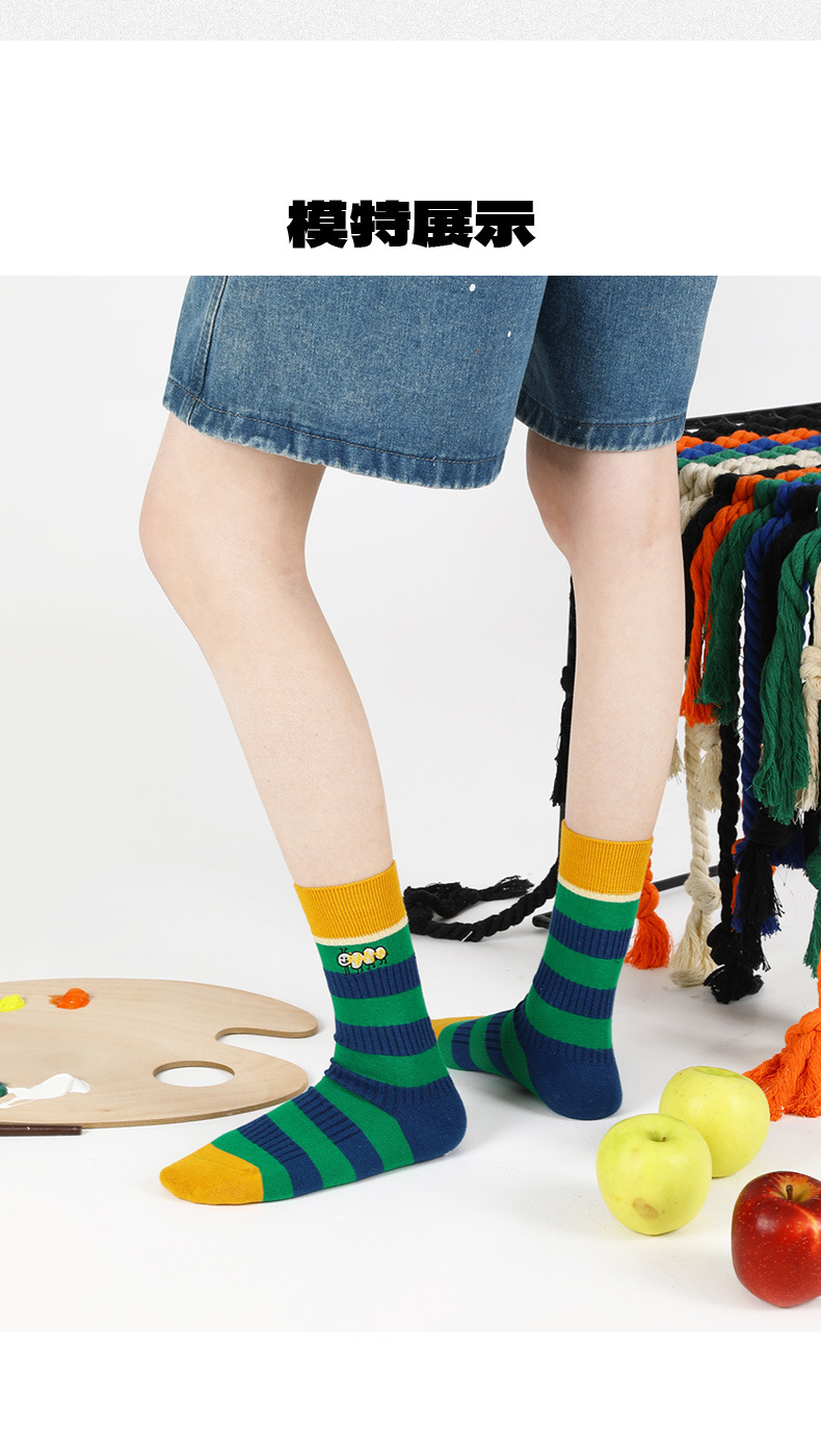 DAMAHOOV 가을과 겨울 오리지널 애벌레 시리즈 두꺼운 튜브 양말 만화 일러스트 애플 자수 양말 어린이스토어 가기