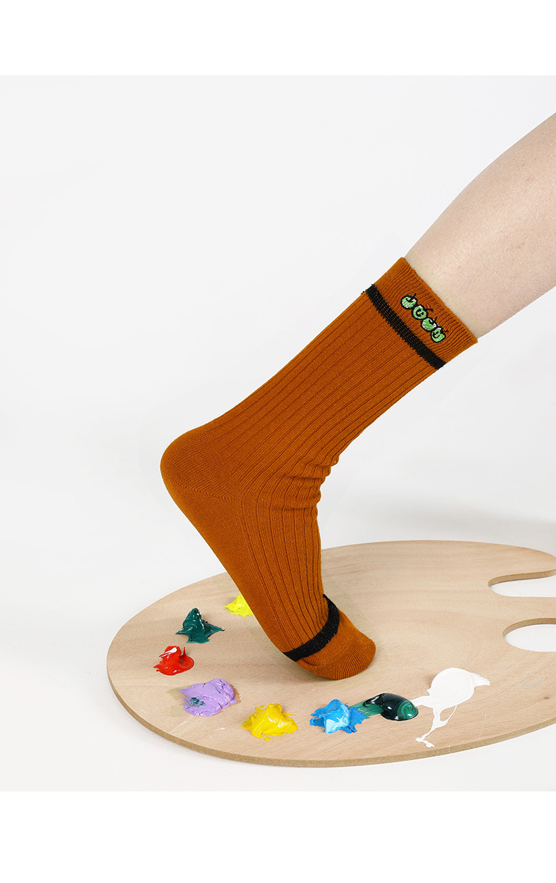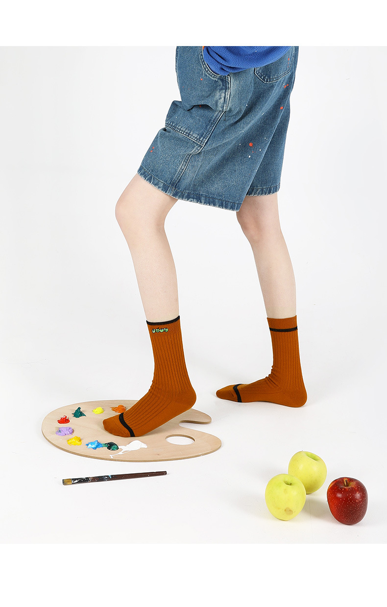 DAMAHOOV 가을과 겨울 오리지널 애벌레 시리즈 두꺼운 튜브 양말 만화 일러스트 애플 자수 양말 어린이