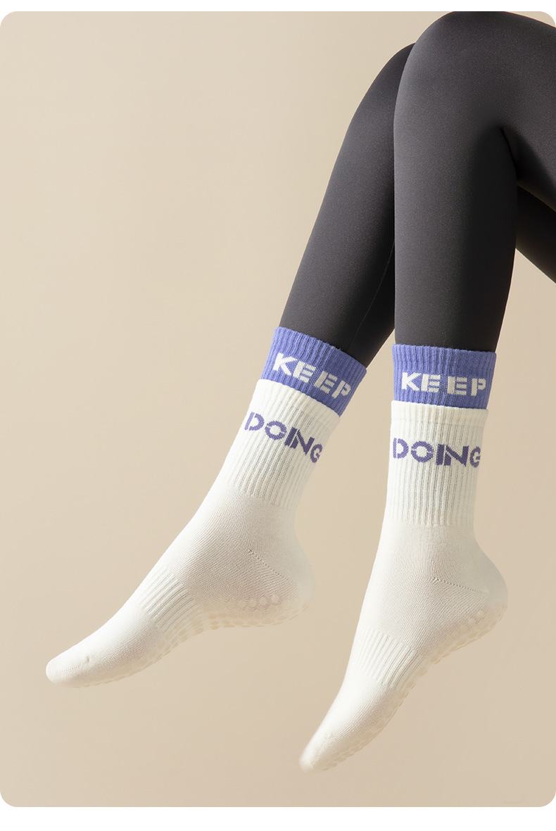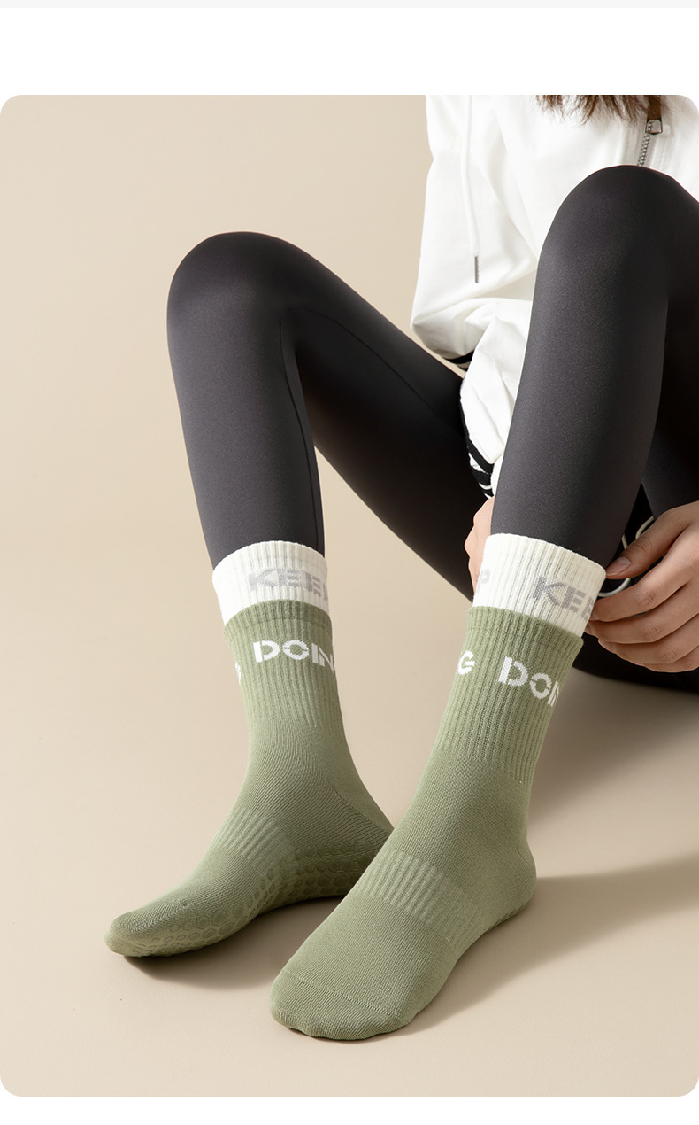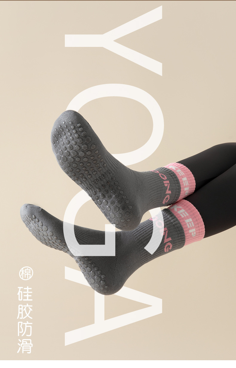 요가 및 필라테스 전용 양말, 여름용 얇은 미끄럼 방지 중간 길이 양말, 이중 레이어 전문 훈련용 러닝 및 피트니스 양말스토어 가기