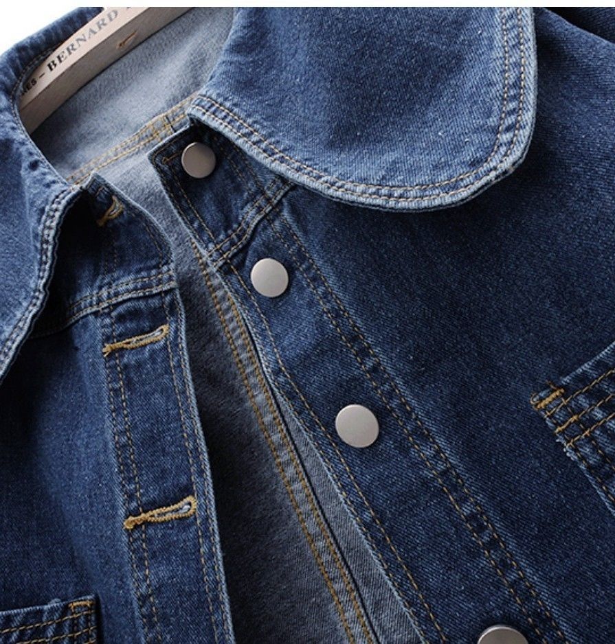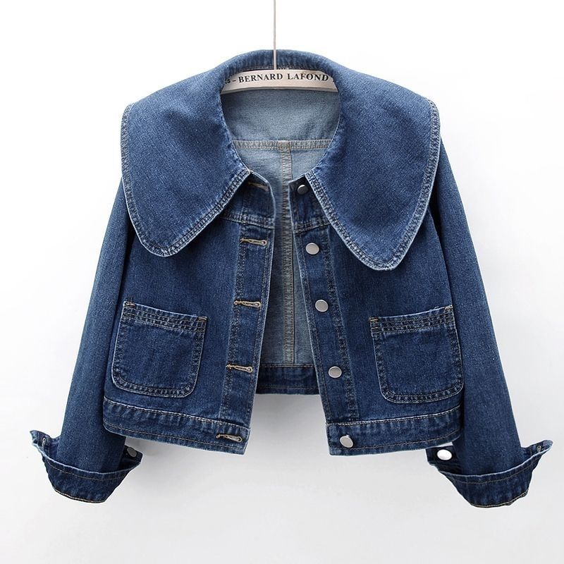 봄 가을 신상 패션 네이비 칼라 숏 데님 재킷 여성 슬림핏 루즈핏 한국 스타일 재킷 소형 여성용 상의