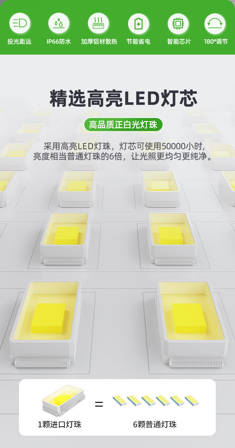 공장 직영 상하이 야밍 LED 투광 조명 IP66 알루미늄 광고 투광 조명 옥외 발 전원 투광 조명