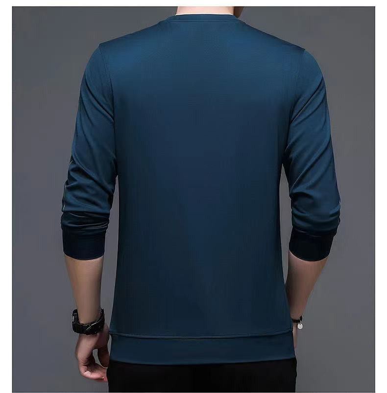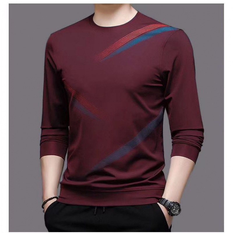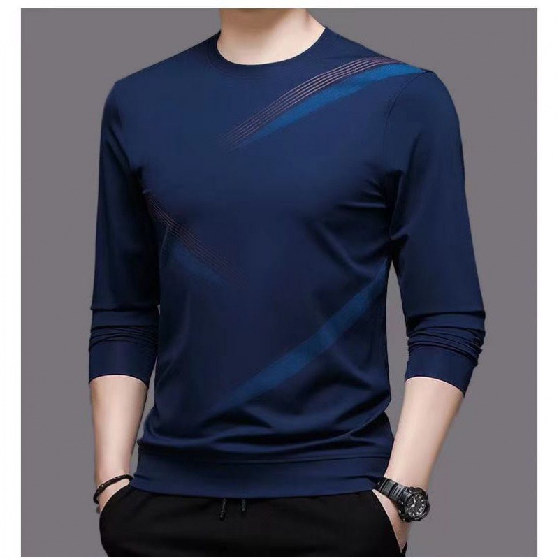 봄과 가을 얇은 라운드 넥 긴팔 티셔츠 남성용 중년 및 청소년 스포츠 레저 스웨터 남성용 탑 의류 티셔츠 기본 셔츠