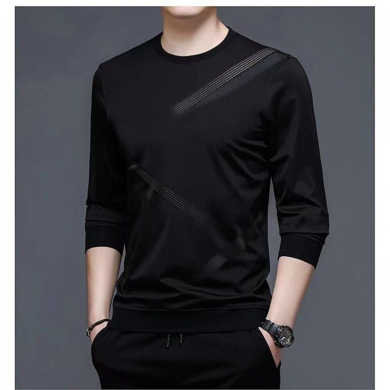 봄과 가을 얇은 라운드 넥 긴팔 티셔츠 남성용 중년 및 청소년 스포츠 레저 스웨터 남성용 탑 의류 티셔츠 기본 셔츠스토어 가기