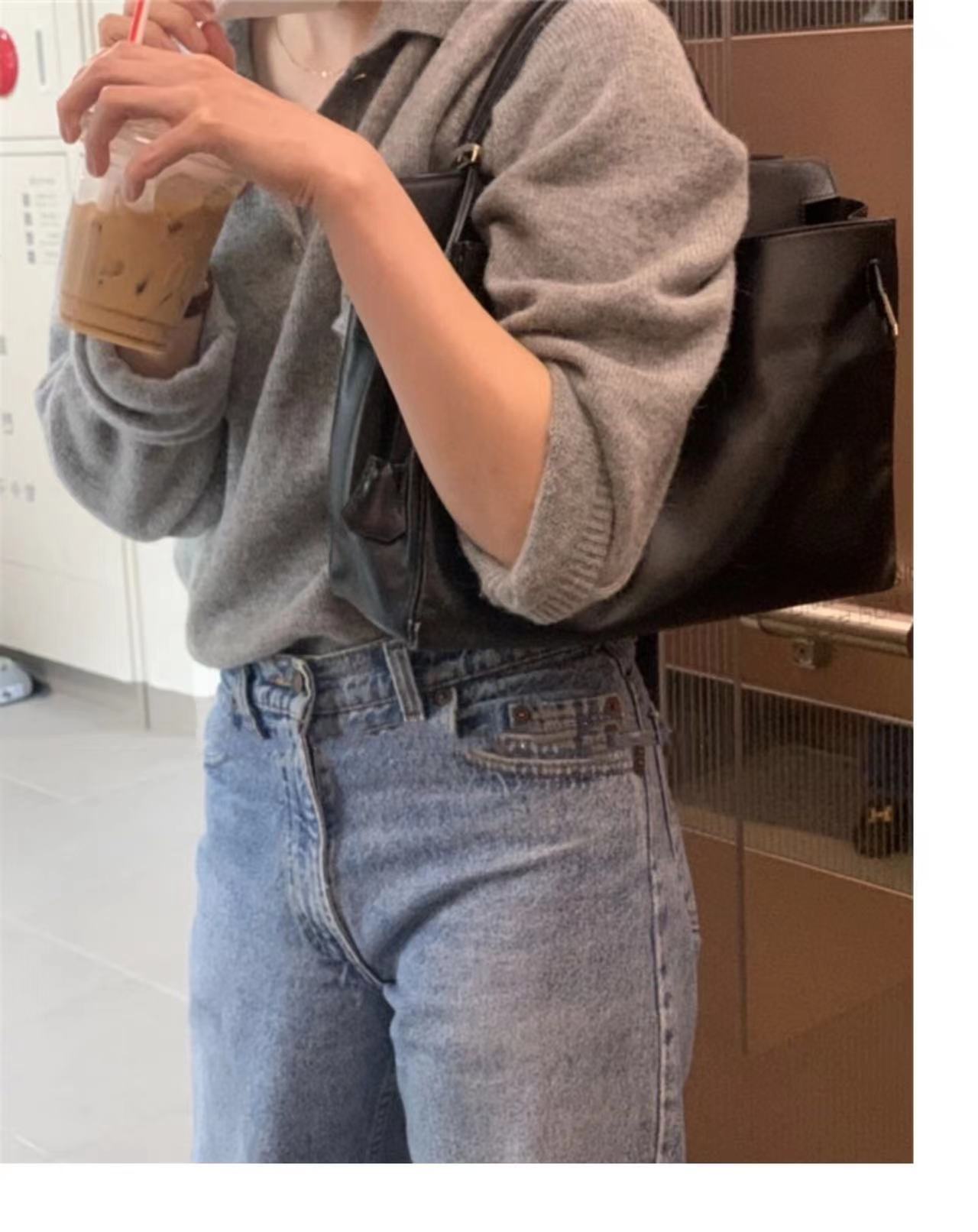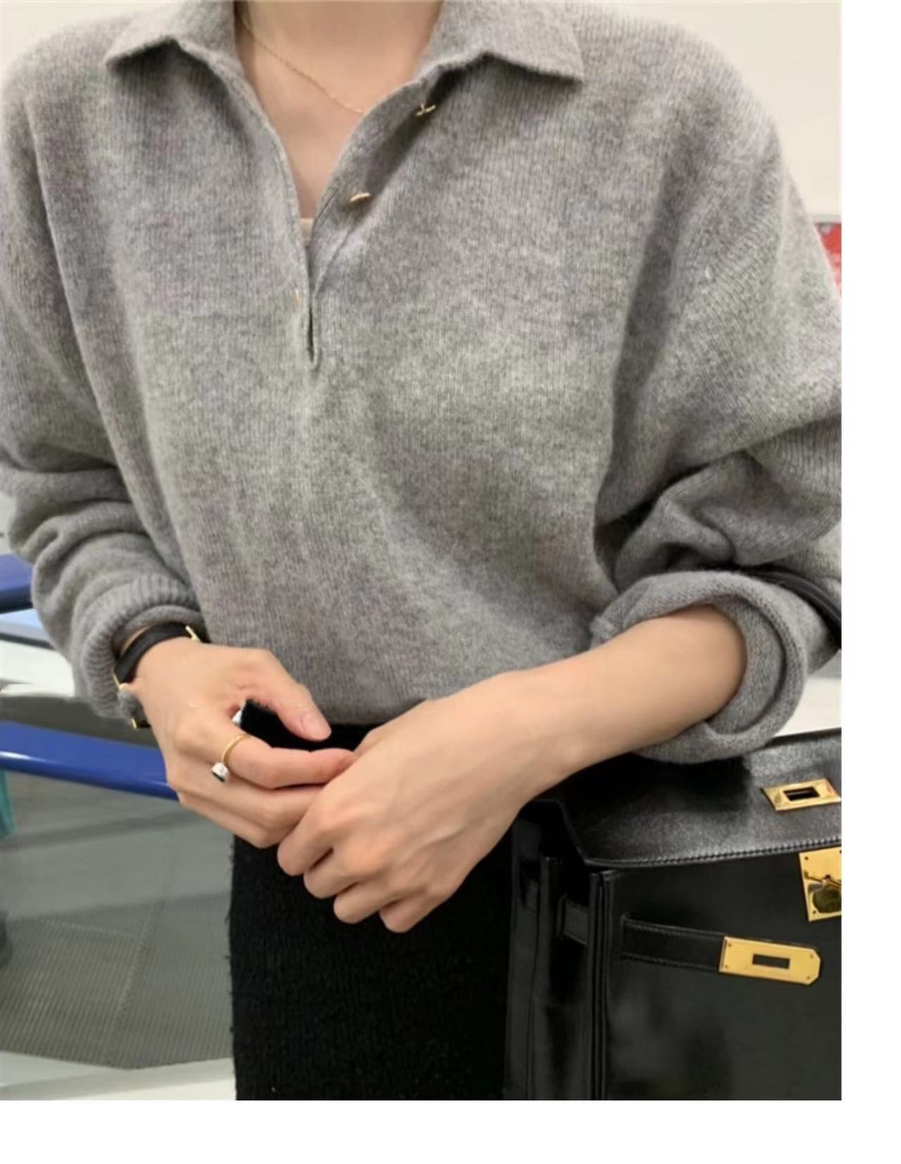 가을과 겨울 새로운 폴로 칼라 긴팔 니트 베이스 셔츠 여성용 패션 조커 슬림핏 루즈한 라펠 풀오버 스웨터스토어 가기
