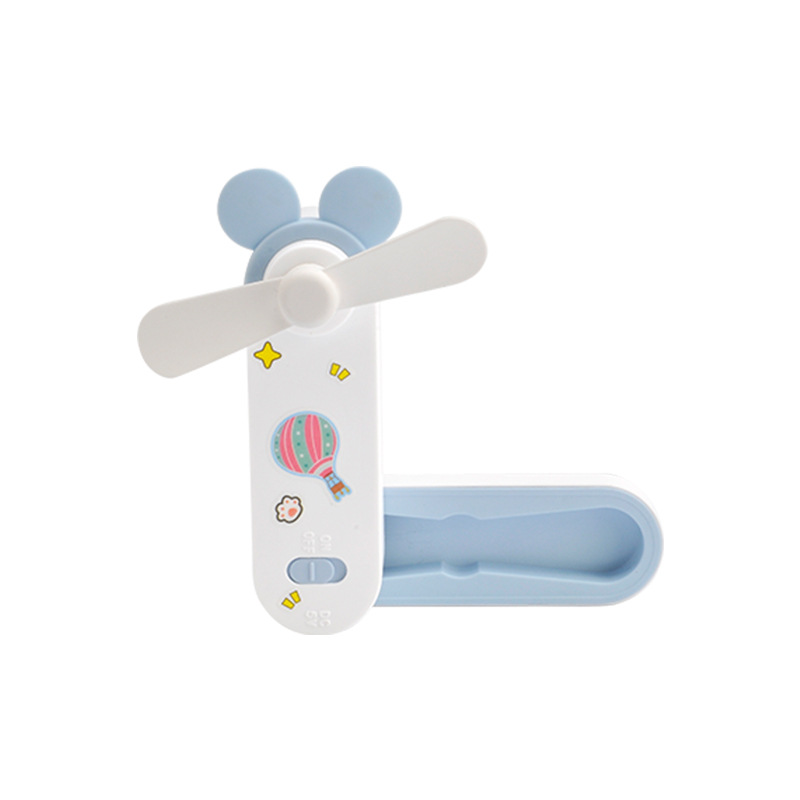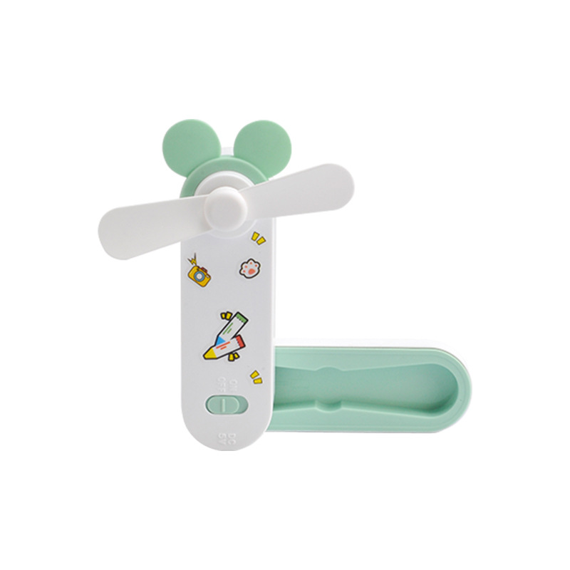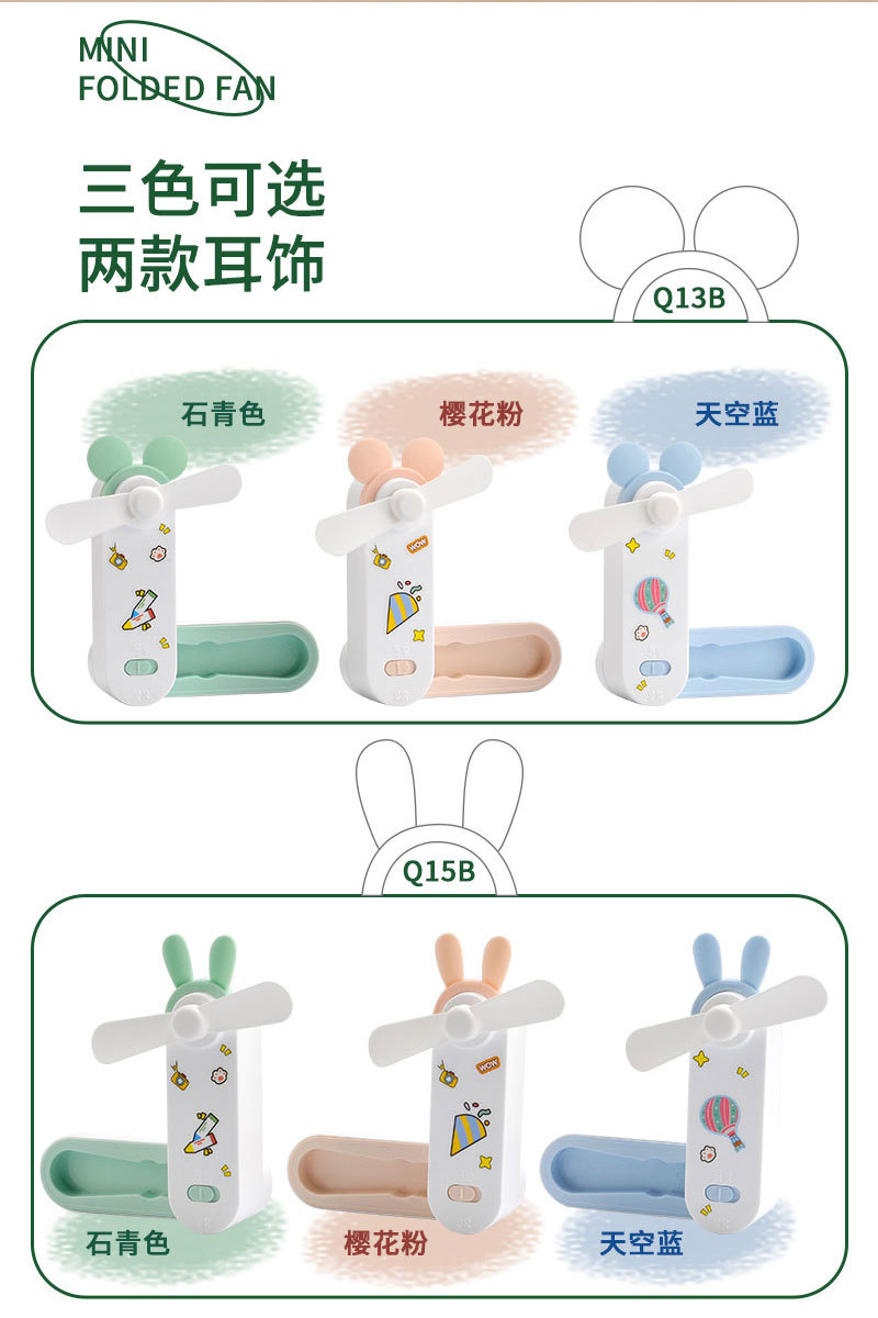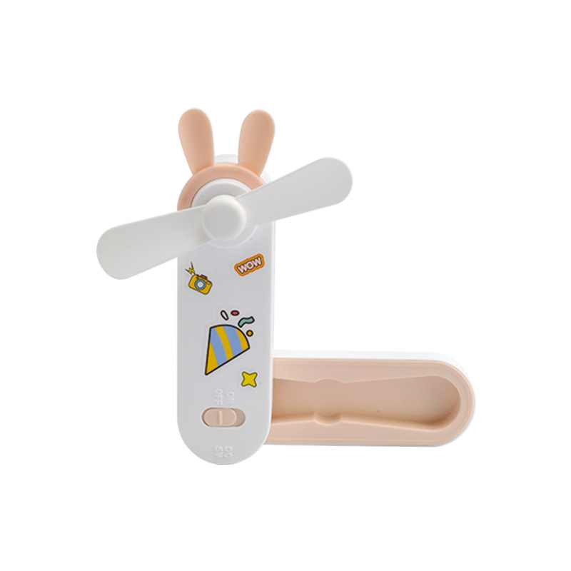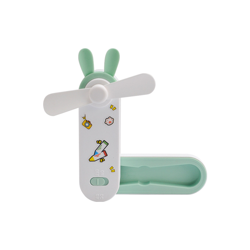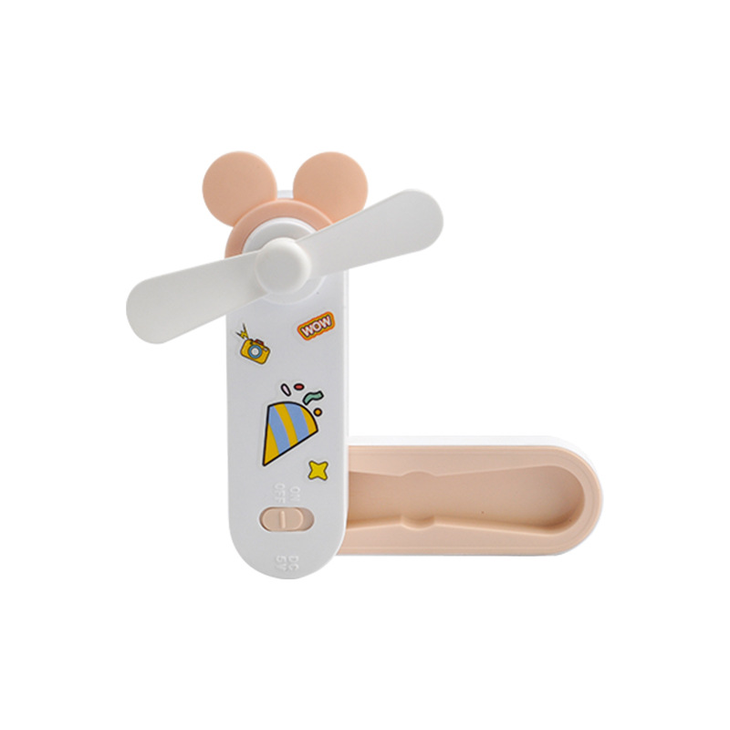 귀여운 만화 미니 USB 충전 접이식 저장 소형 팬 DIY 스티커 귀걸이 휴대용 포켓 데스크탑 팬