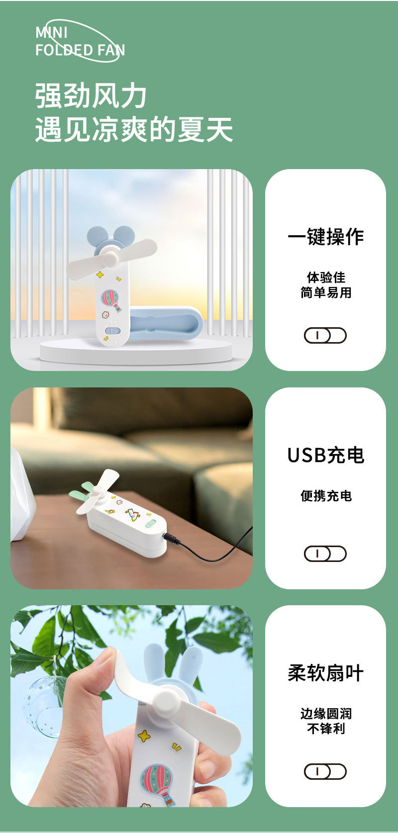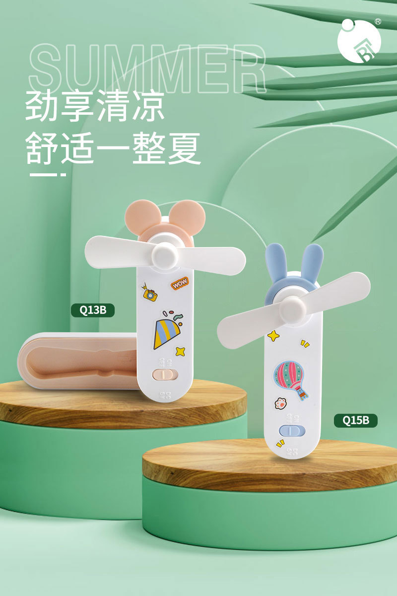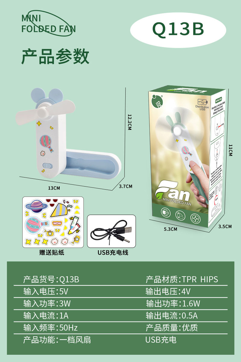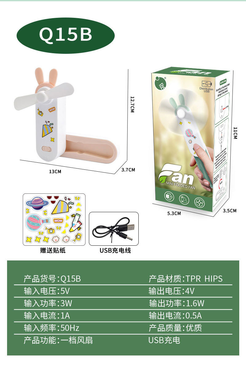 귀여운 만화 미니 USB 충전 접이식 저장 소형 팬 DIY 스티커 귀걸이 휴대용 포켓 데스크탑 팬
