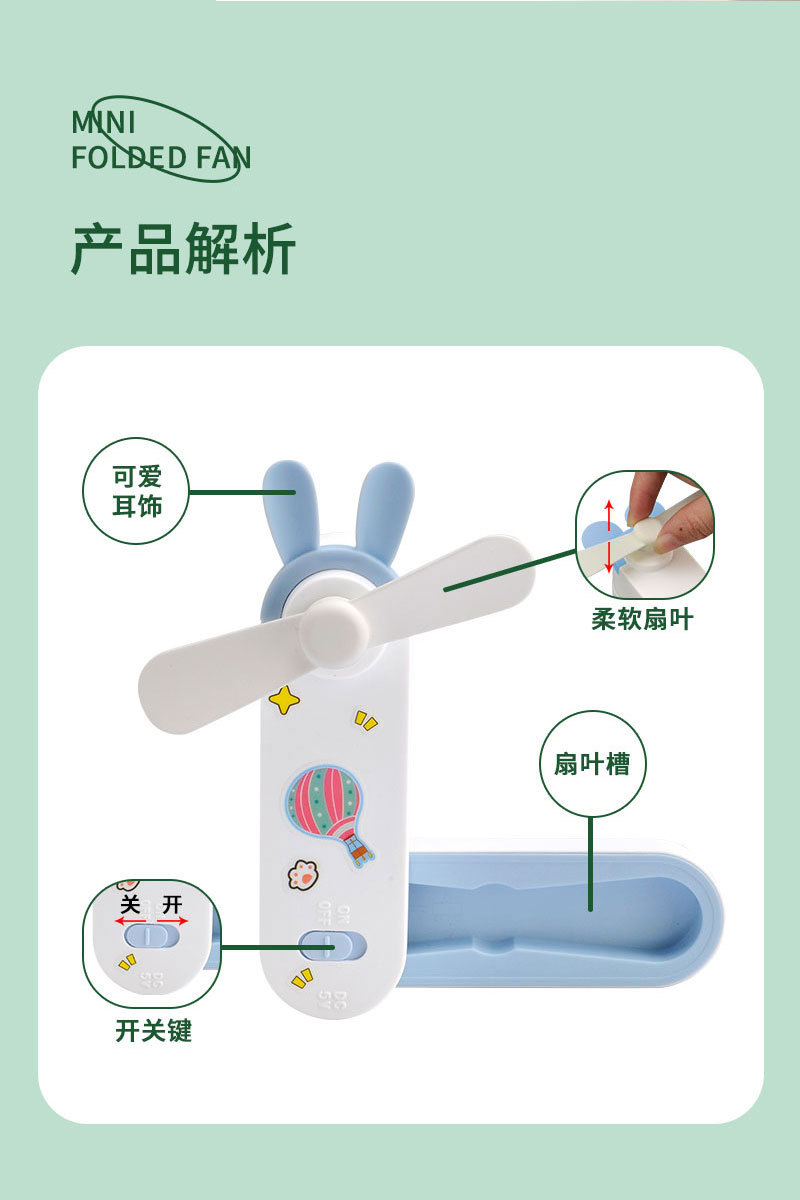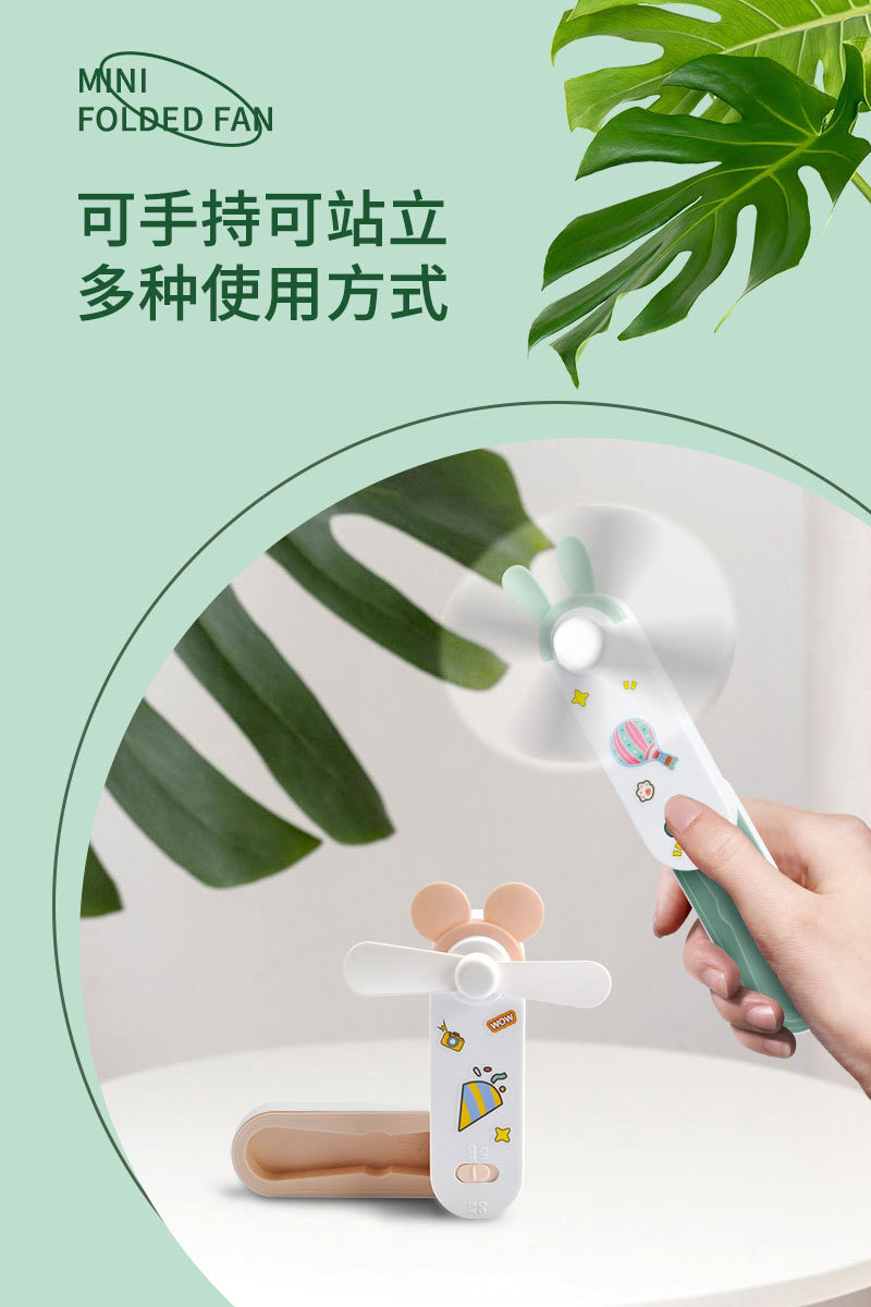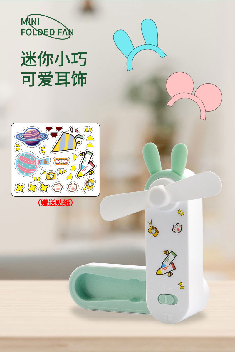 귀여운 만화 미니 USB 충전 접이식 저장 소형 팬 DIY 스티커 귀걸이 휴대용 포켓 데스크탑 팬스토어 가기