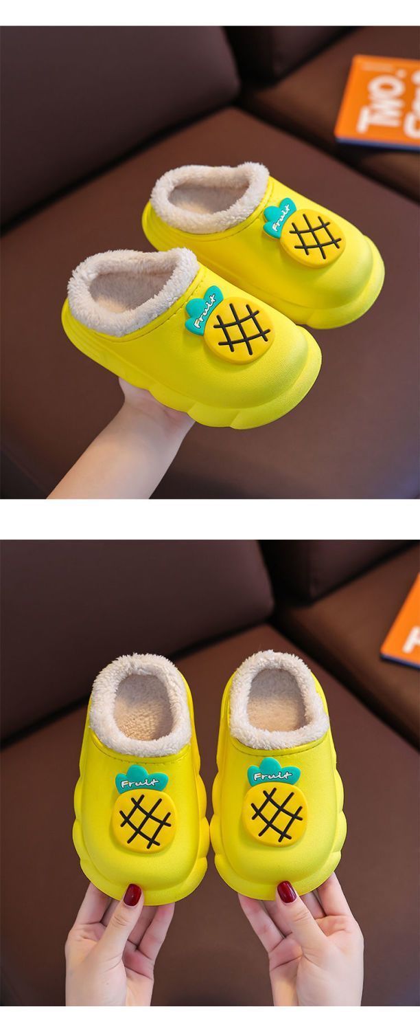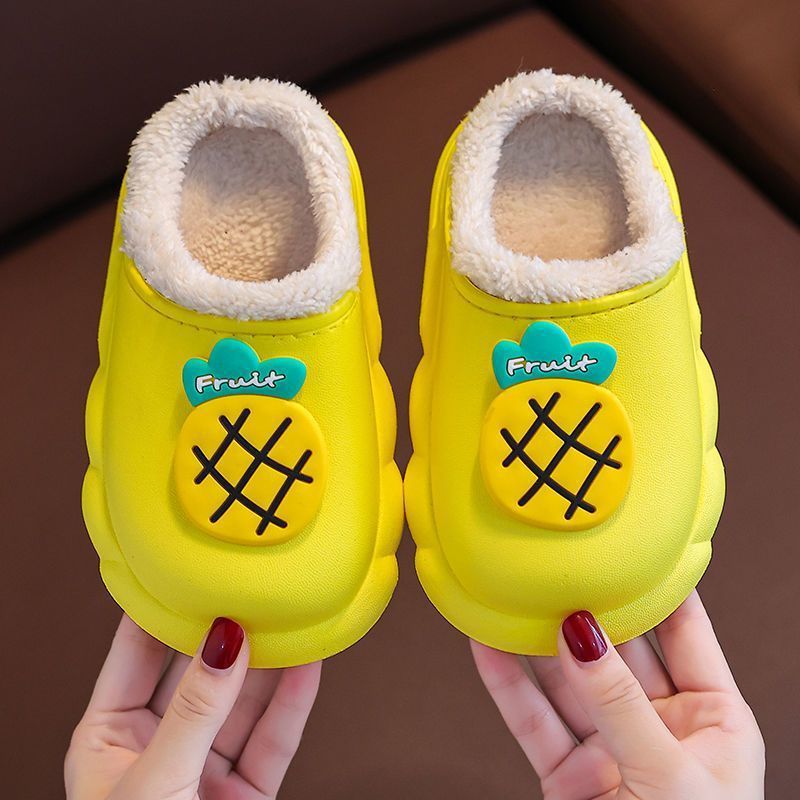 새 집 면 슬리퍼 어린이 과일 만화 겨울 기모 따뜻한 겉옷 아기 방수 미끄럼 방지 면 슬리퍼