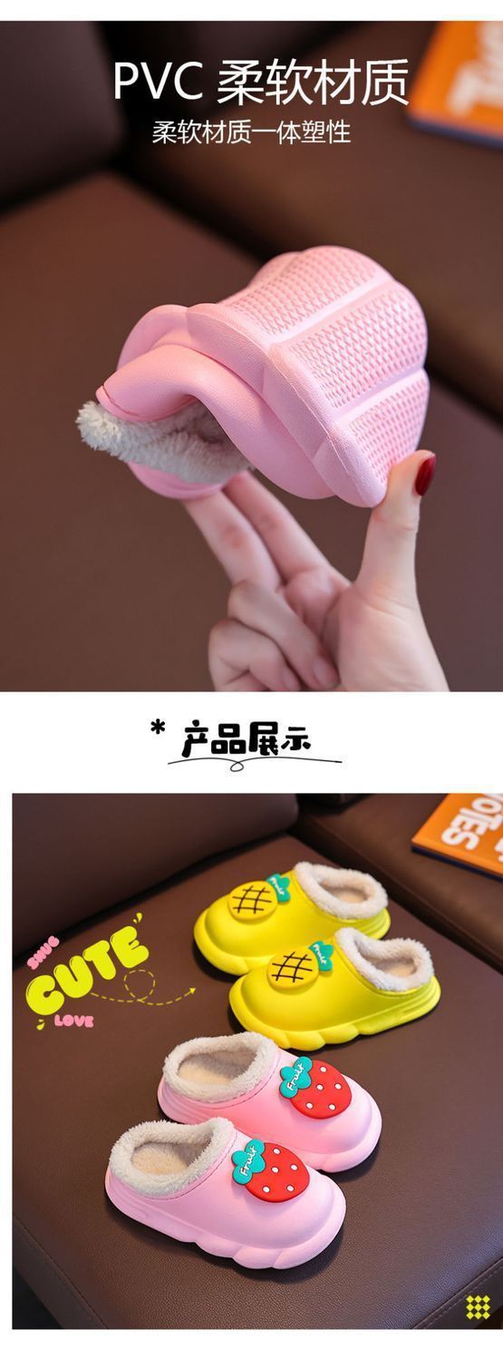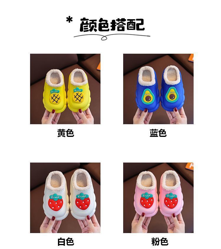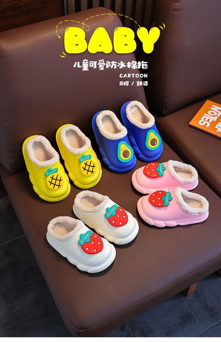 새 집 면 슬리퍼 어린이 과일 만화 겨울 기모 따뜻한 겉옷 아기 방수 미끄럼 방지 면 슬리퍼스토어 가기