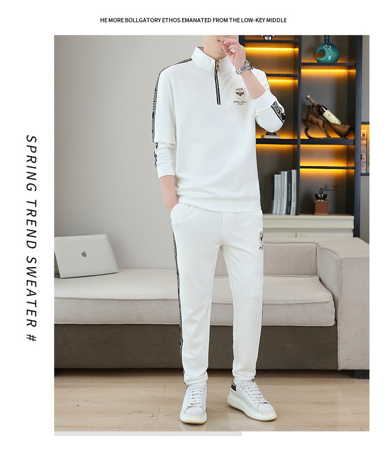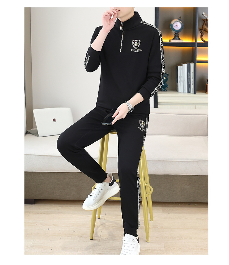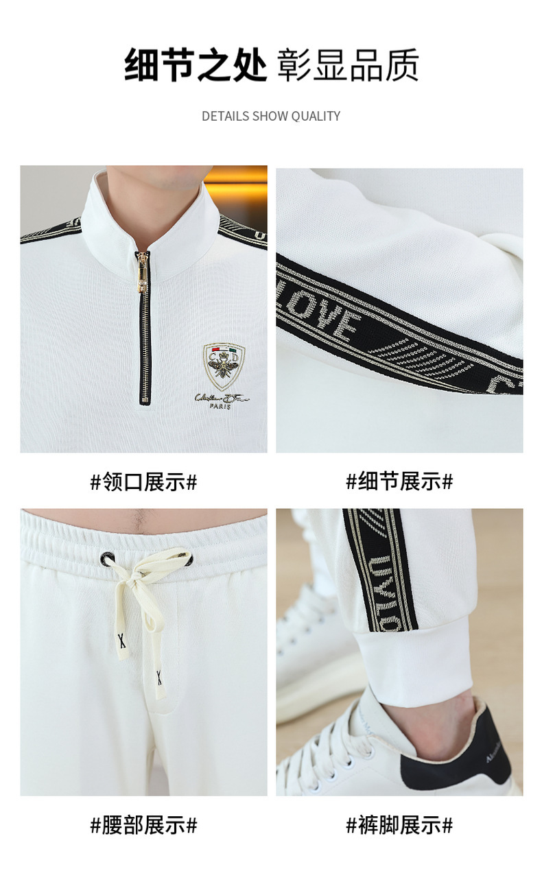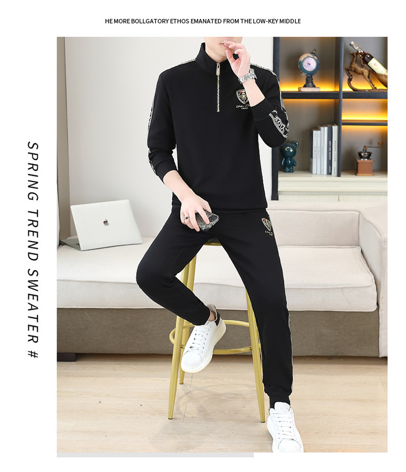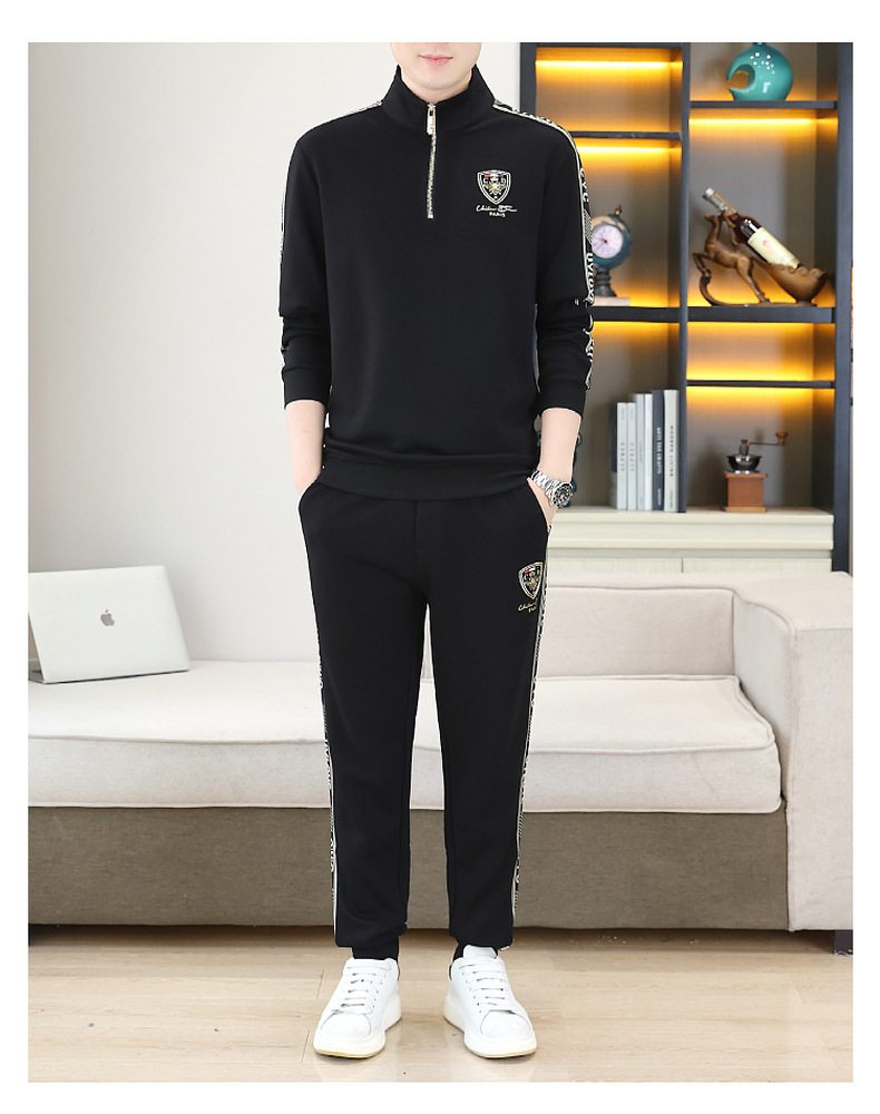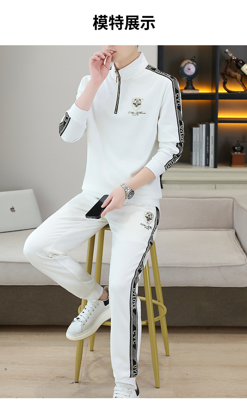 고급 유럽 남성 세트 캐주얼 스포츠 트렌디 브랜드 슬림핏 패션 가을/겨울 세로 칼라 하프 지퍼 땀 남성복스토어 가기