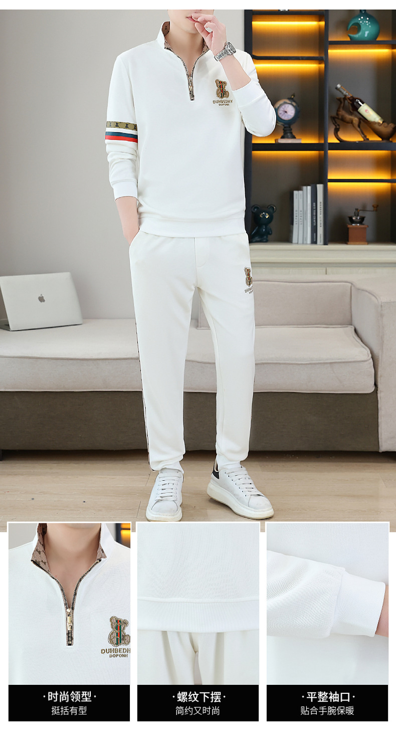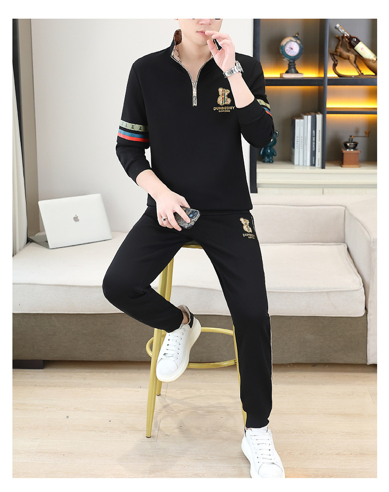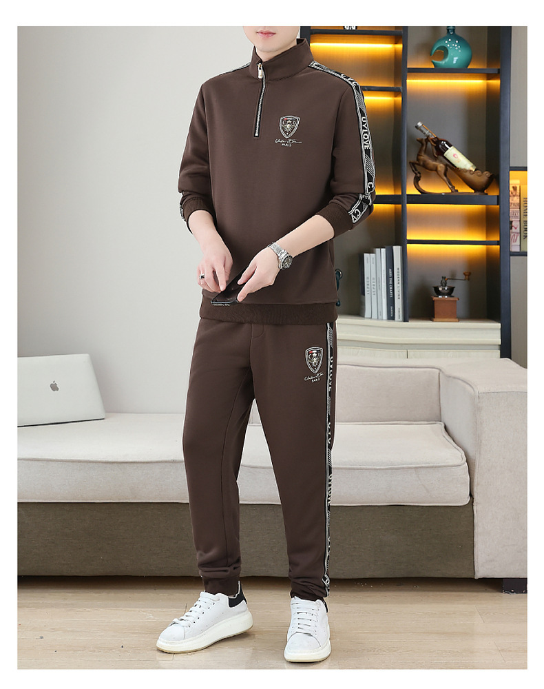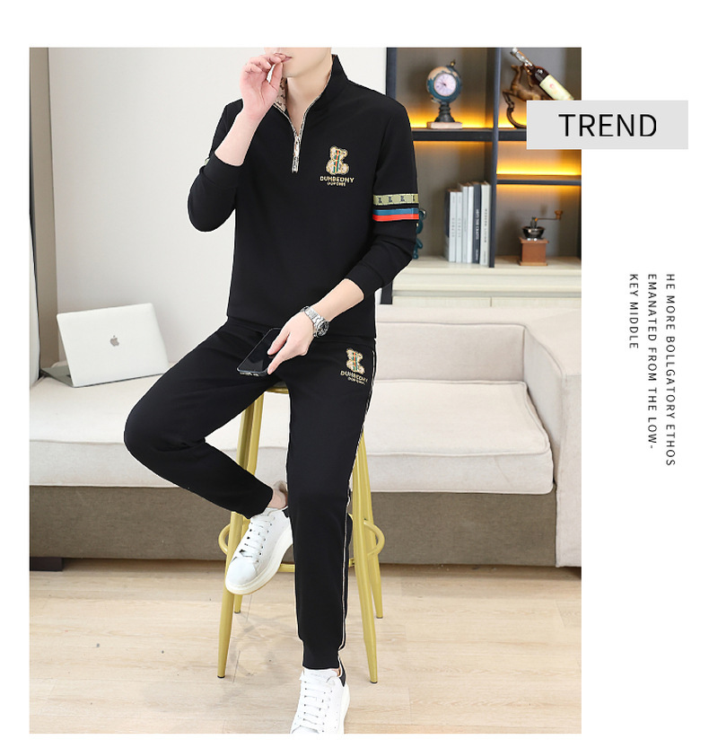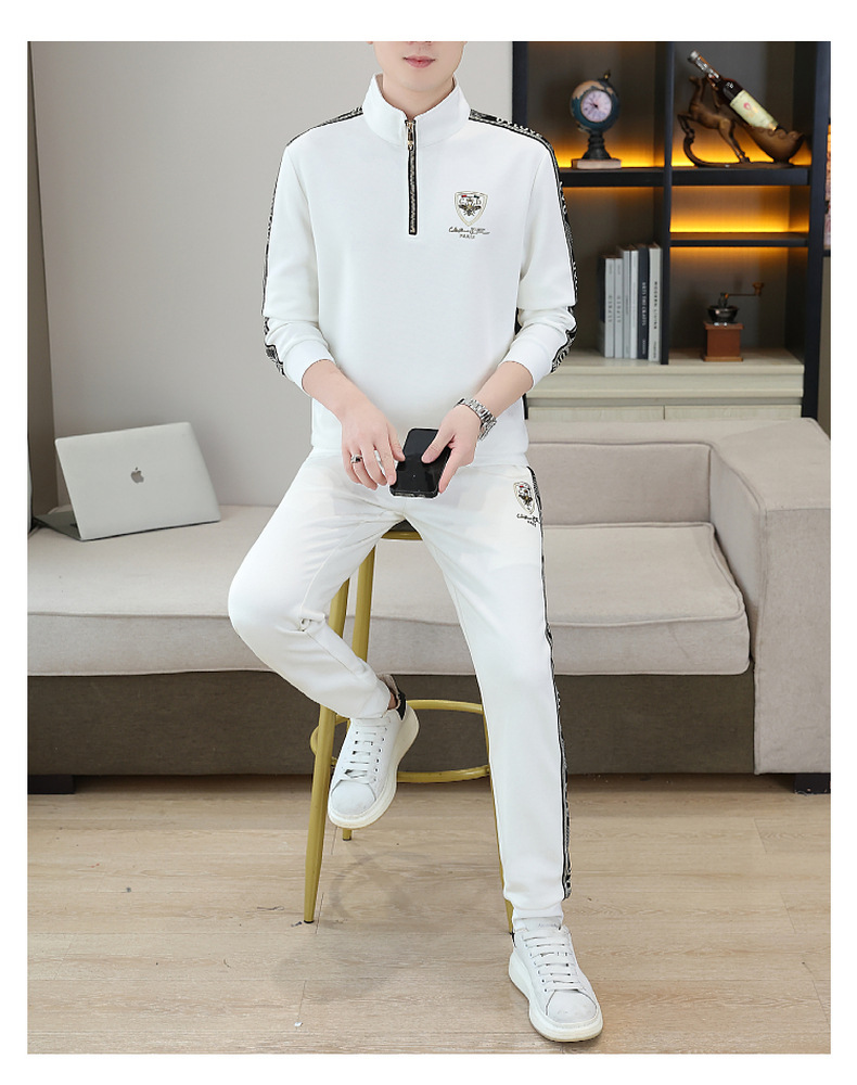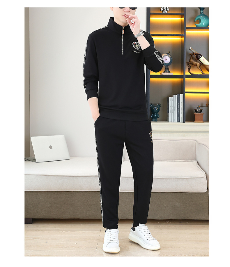 고급 유럽 남성 세트 캐주얼 스포츠 트렌디 브랜드 슬림핏 패션 가을/겨울 세로 칼라 하프 지퍼 땀 남성복스토어 가기