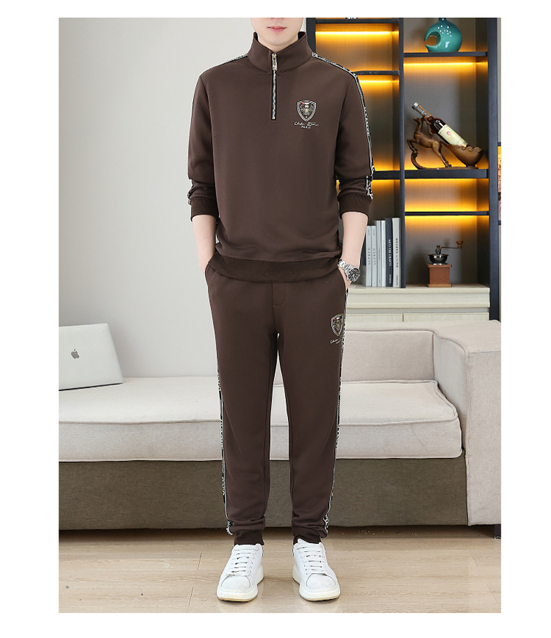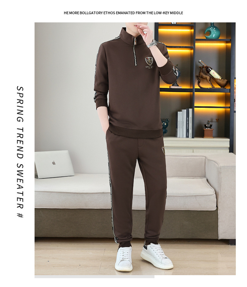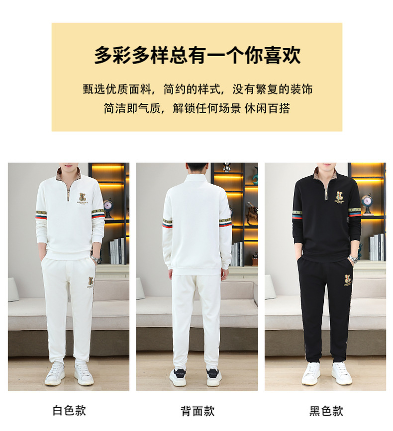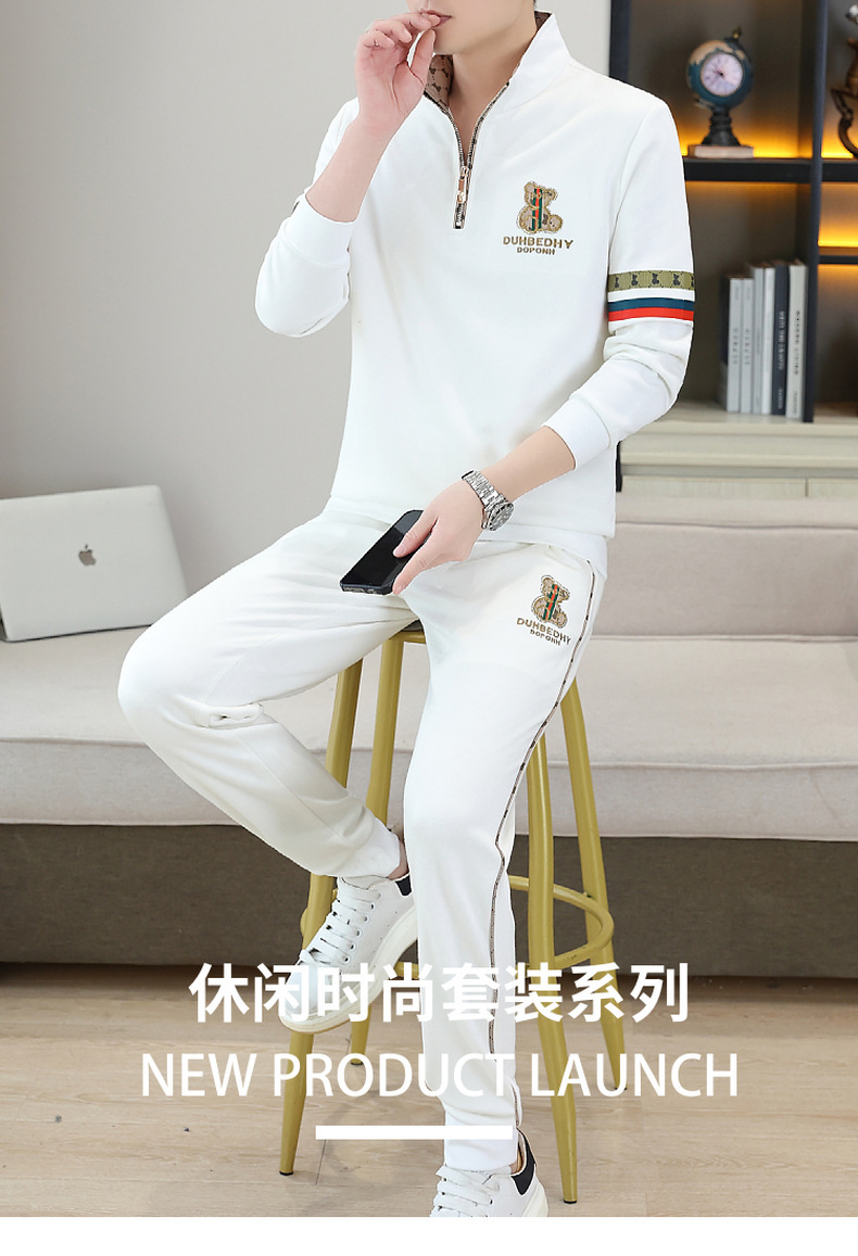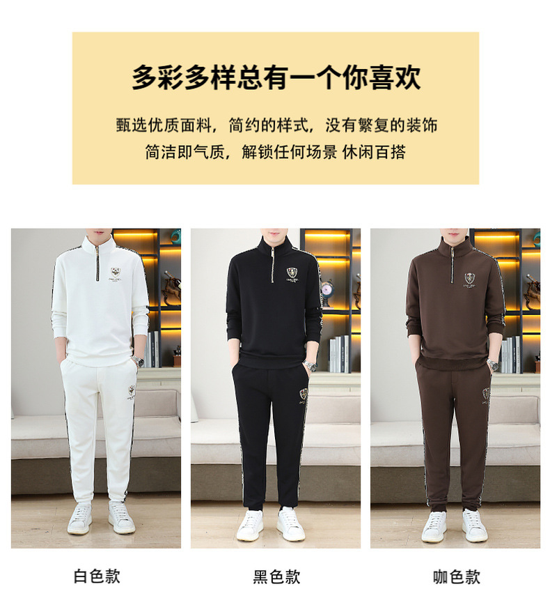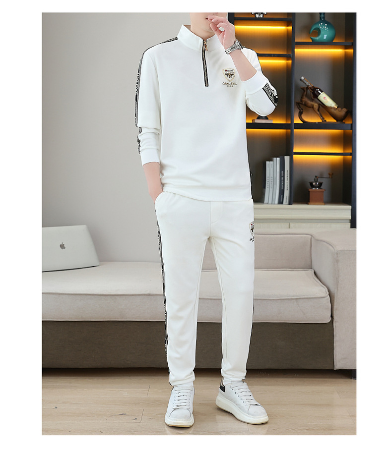 고급 유럽 남성 세트 캐주얼 스포츠 트렌디 브랜드 슬림핏 패션 가을/겨울 세로 칼라 하프 지퍼 땀 남성복스토어 가기