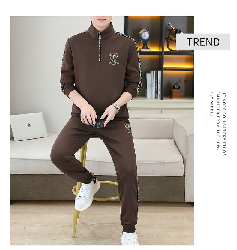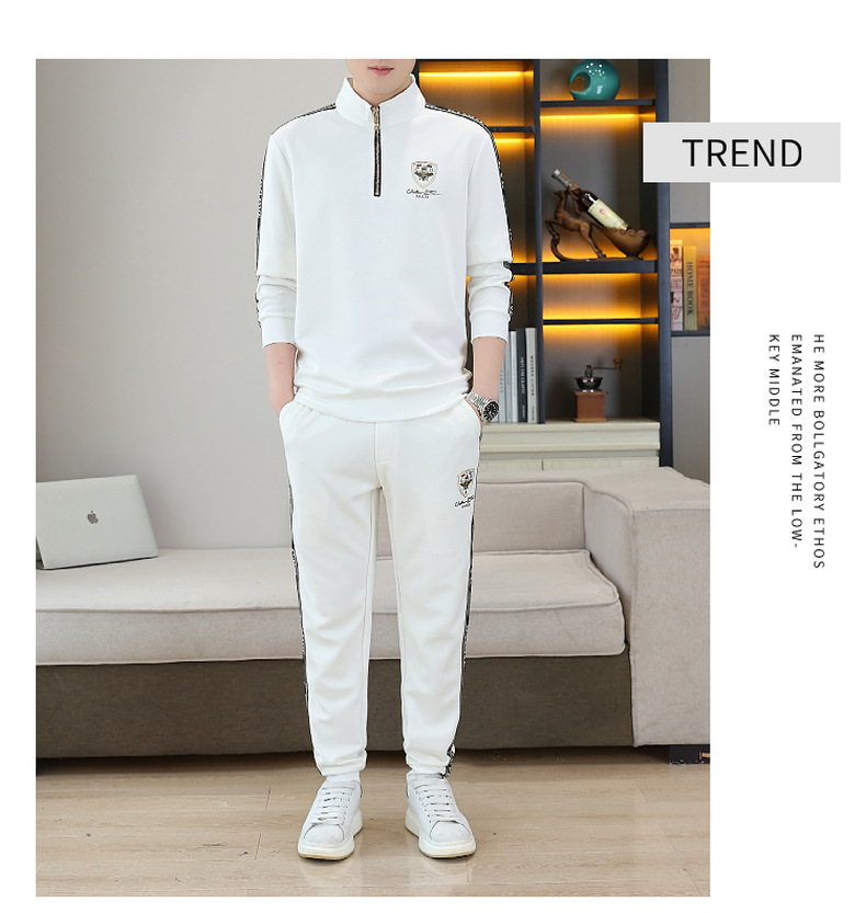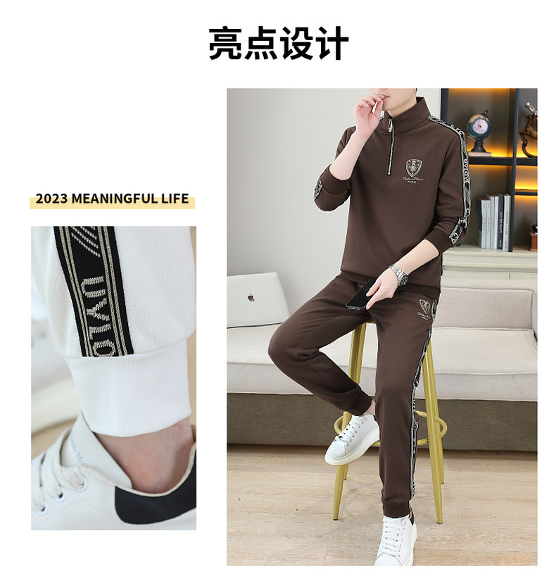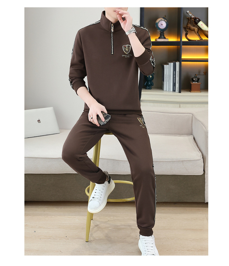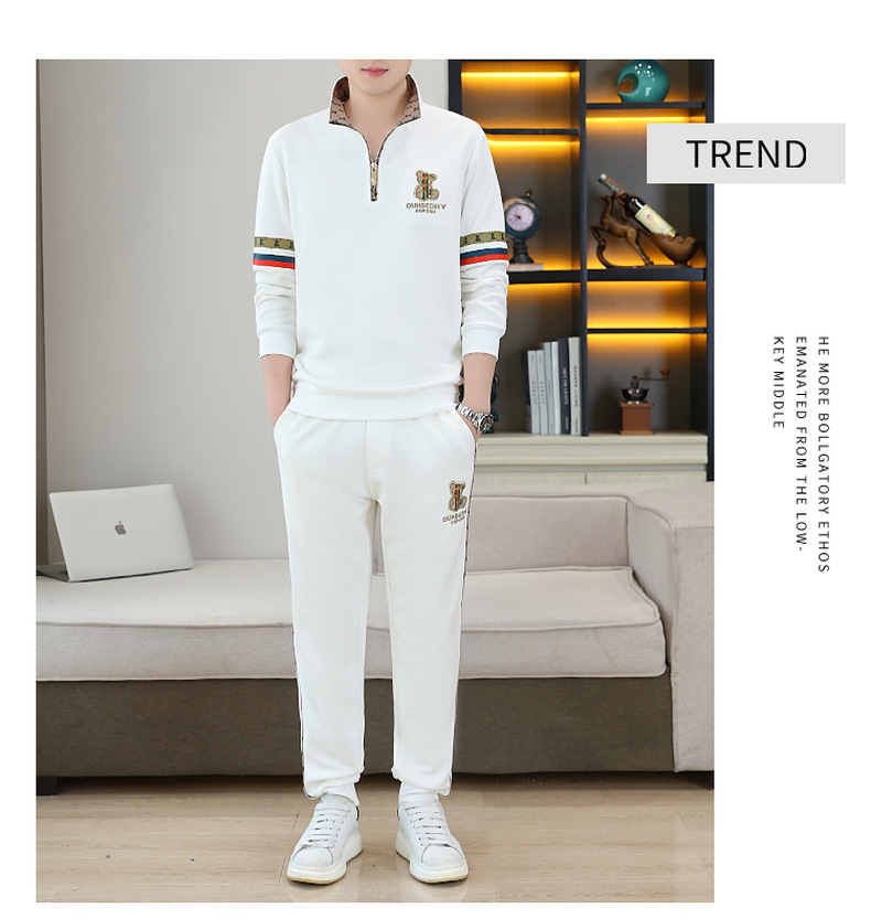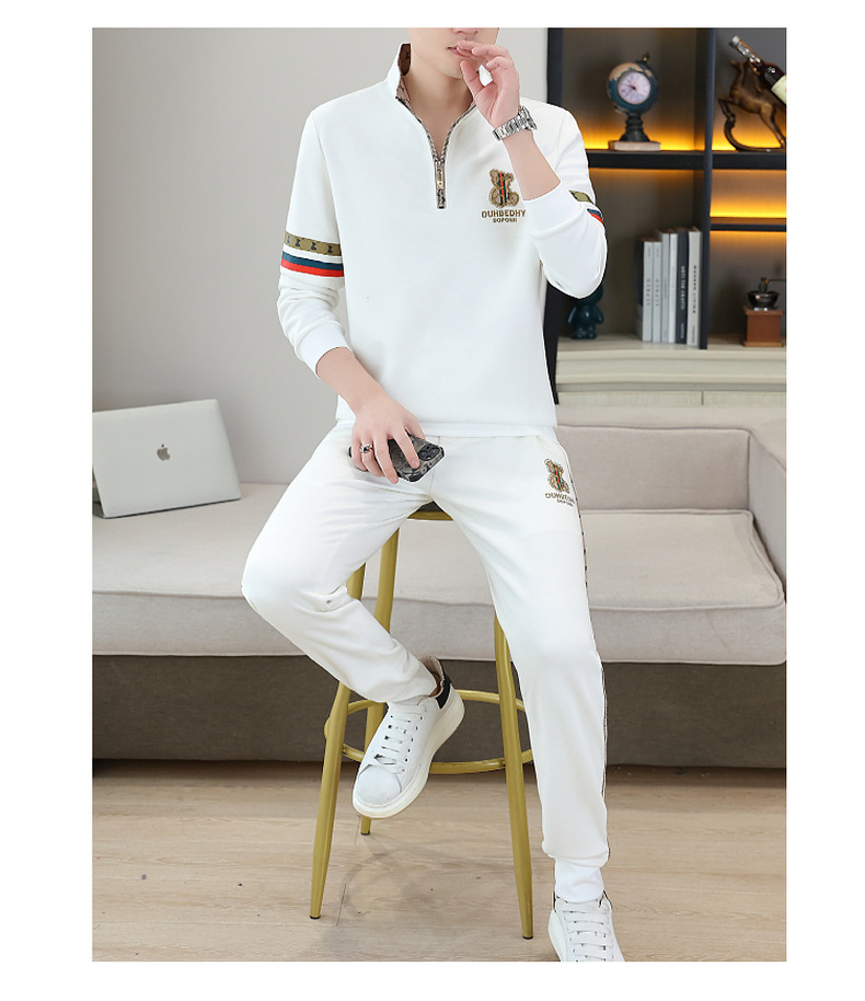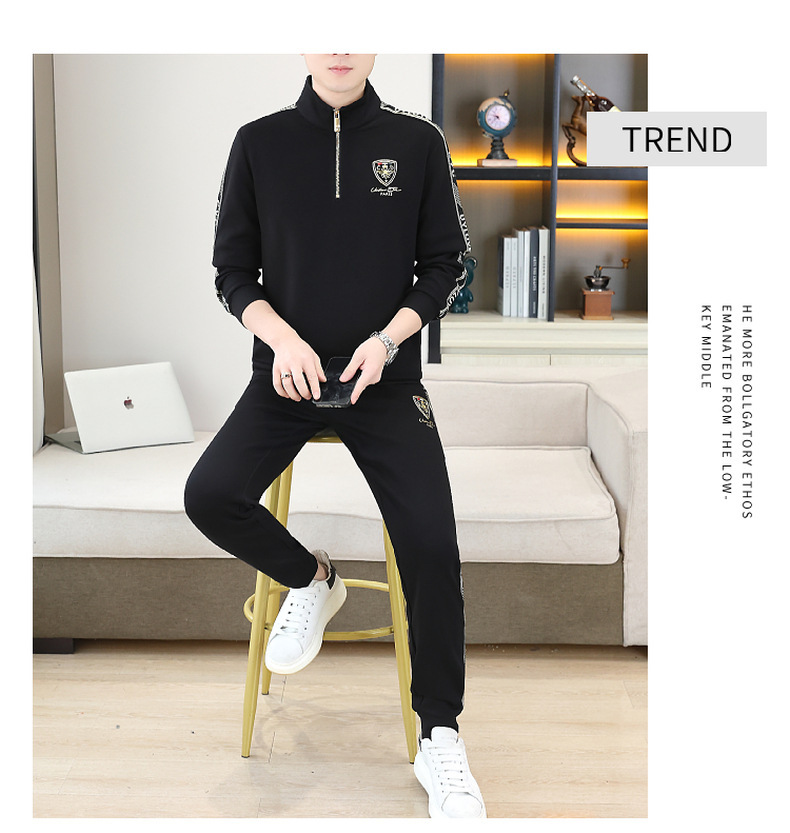 고급 유럽 남성 세트 캐주얼 스포츠 트렌디 브랜드 슬림핏 패션 가을/겨울 세로 칼라 하프 지퍼 땀 남성복스토어 가기