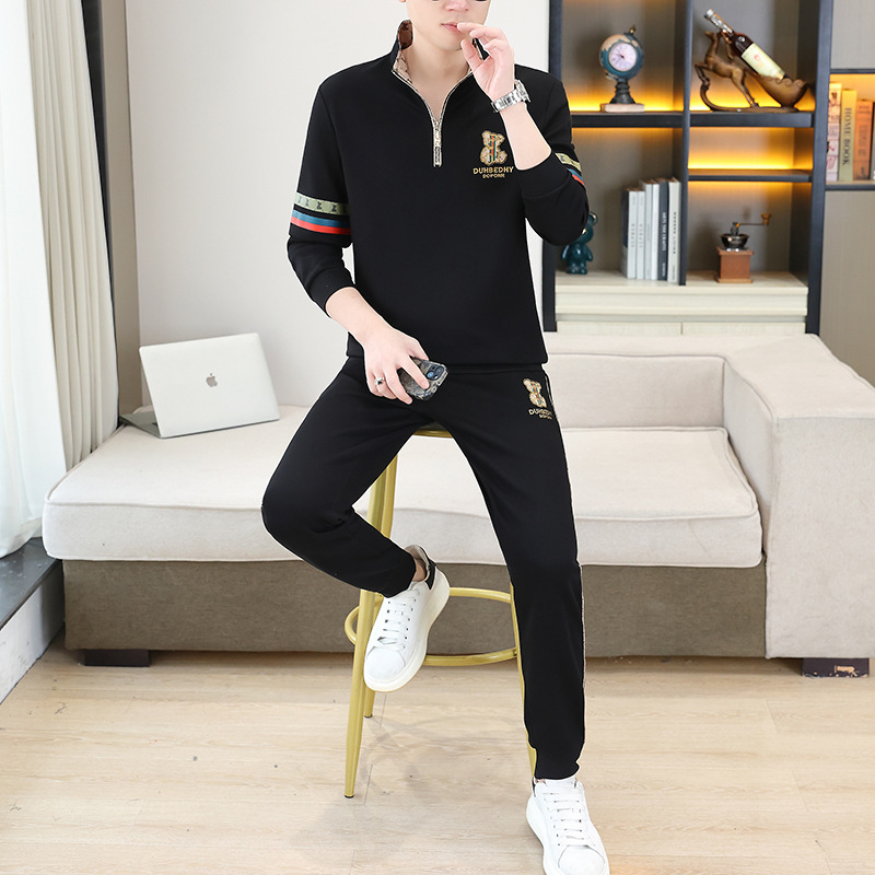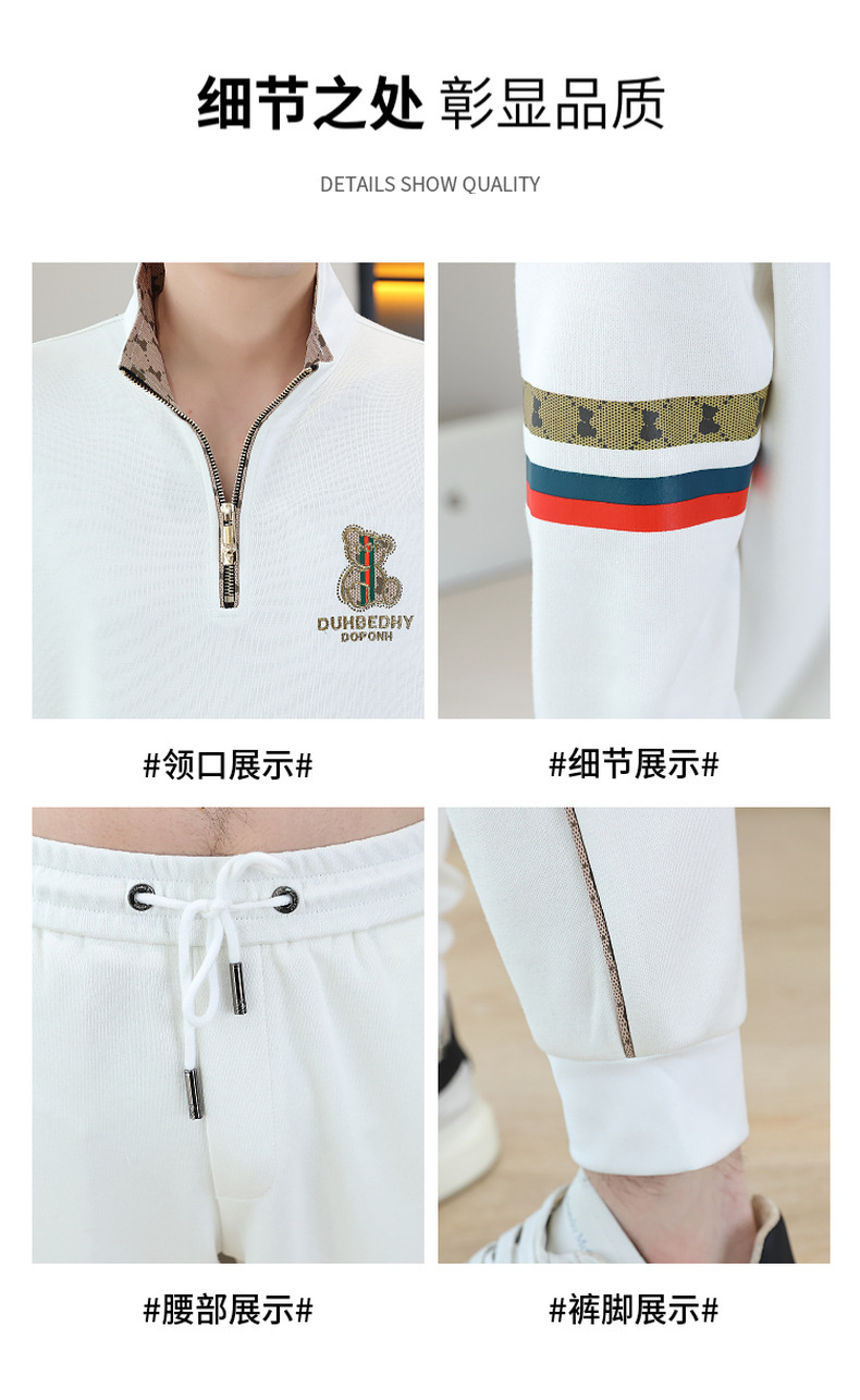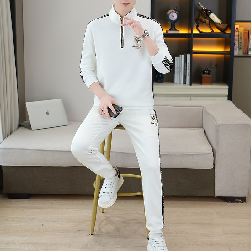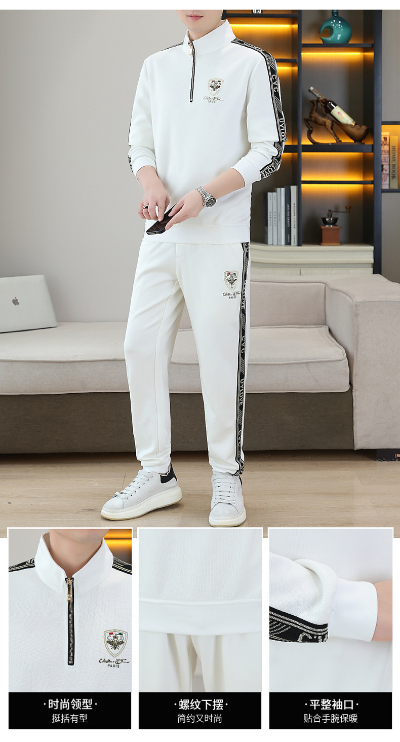 고급 유럽 남성 세트 캐주얼 스포츠 트렌디 브랜드 슬림핏 패션 가을/겨울 세로 칼라 하프 지퍼 땀 남성복