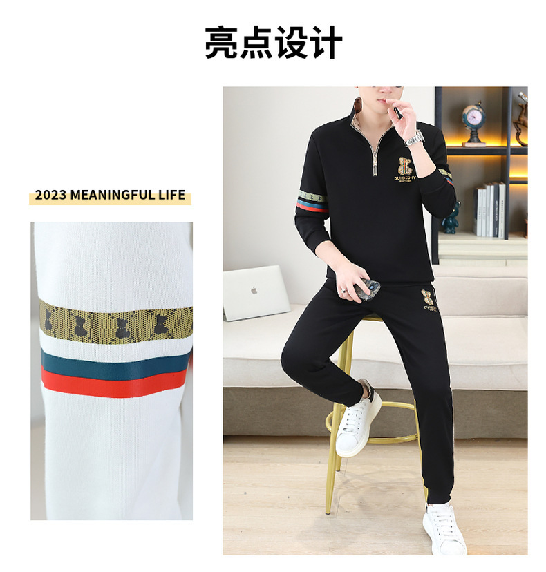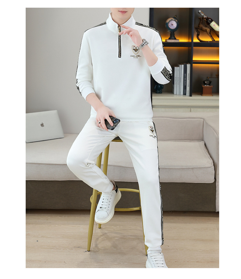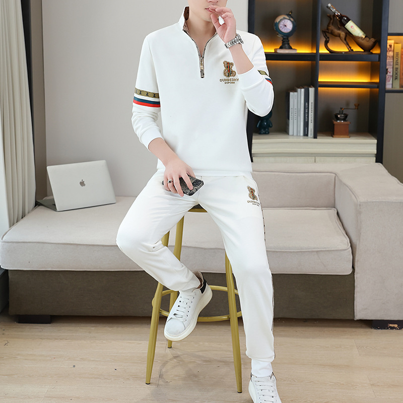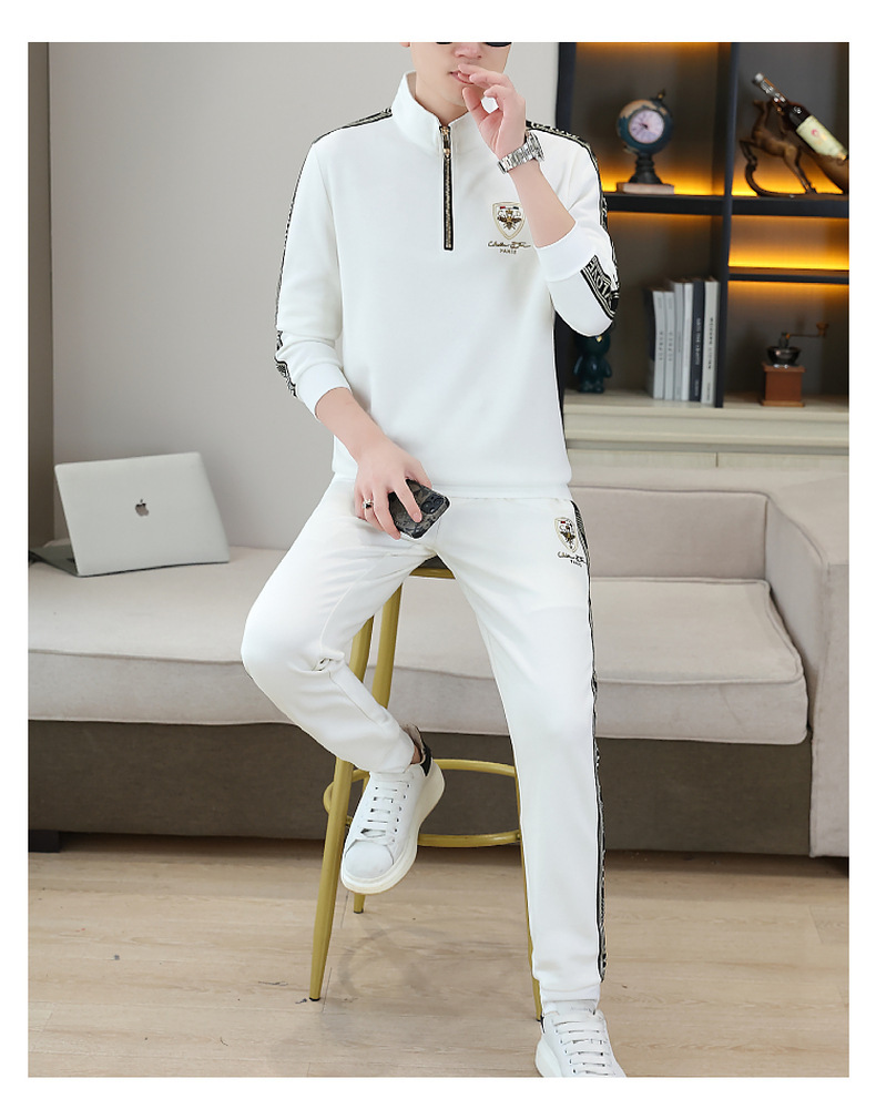 고급 유럽 남성 세트 캐주얼 스포츠 트렌디 브랜드 슬림핏 패션 가을/겨울 세로 칼라 하프 지퍼 땀 남성복