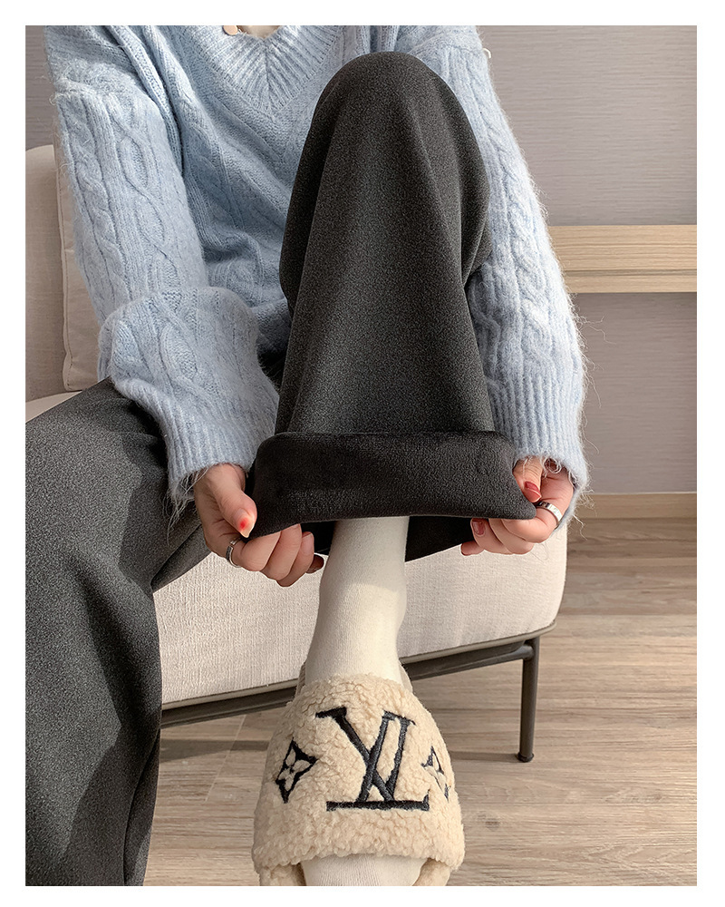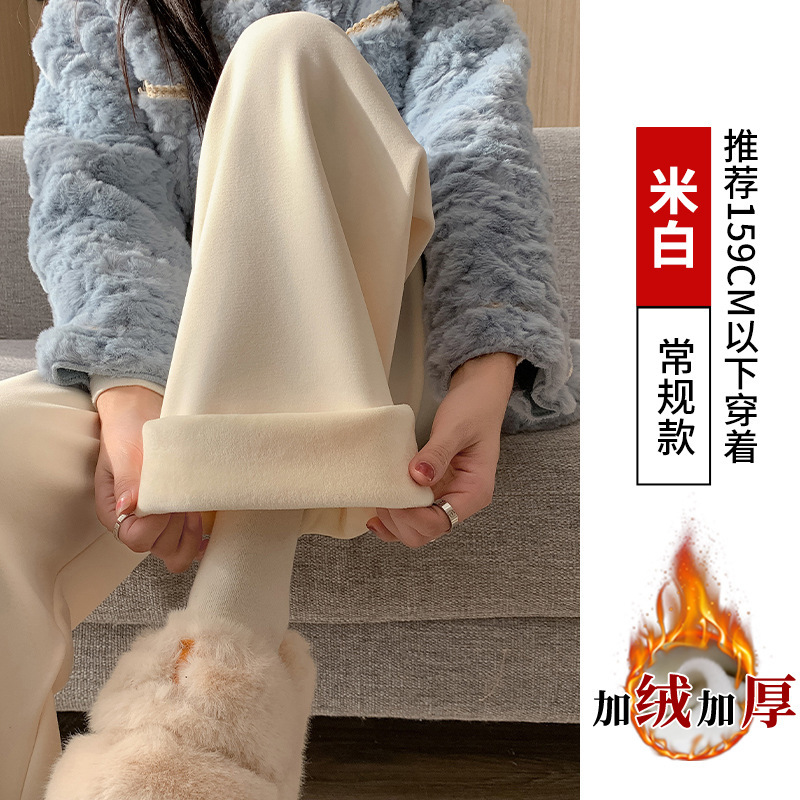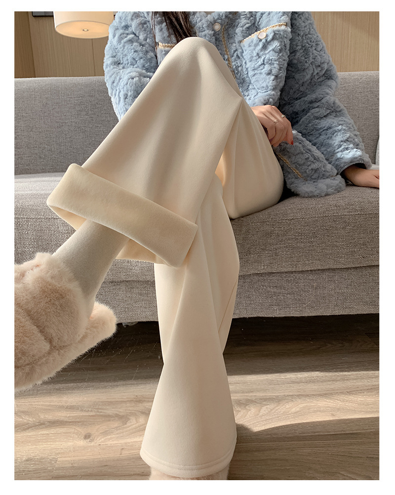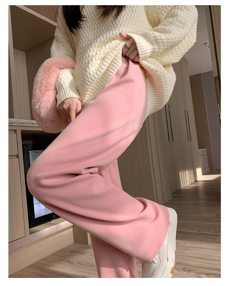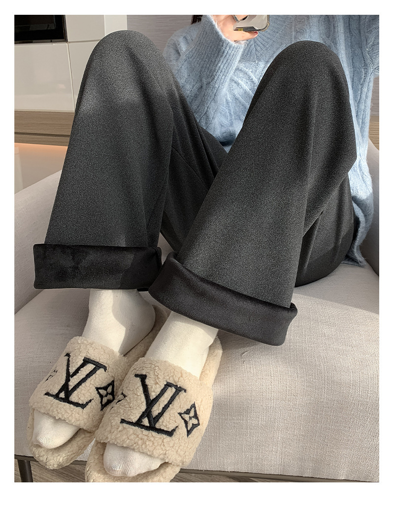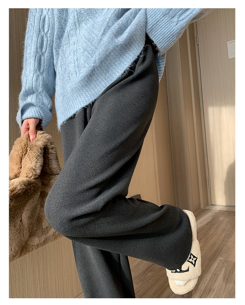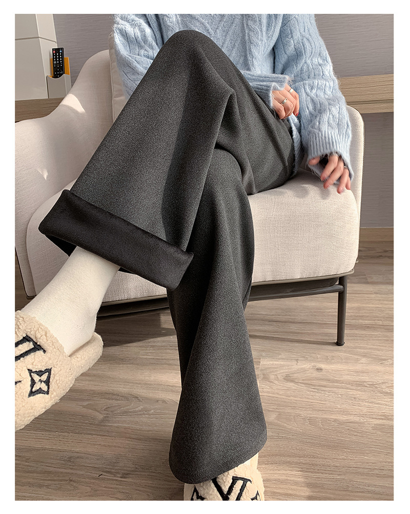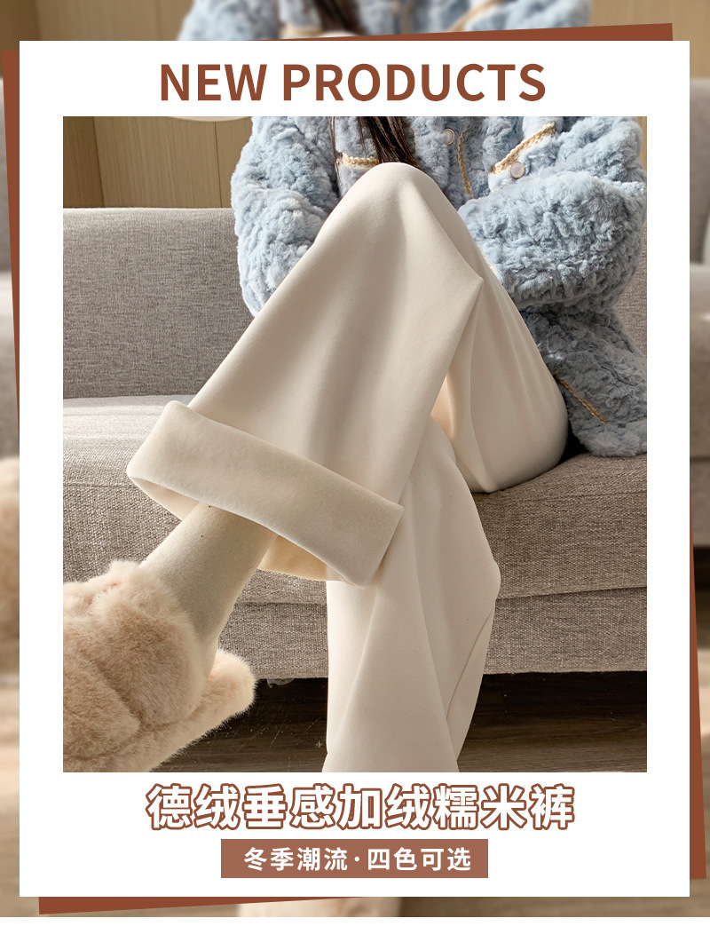독일 벨벳 와이드 레그 팬츠 여성의 가을과 겨울 하이 웨이스트 느슨한 좁은 드레이프 바지 기모 스트레이트 캐주얼 찹쌀 바지