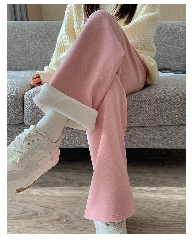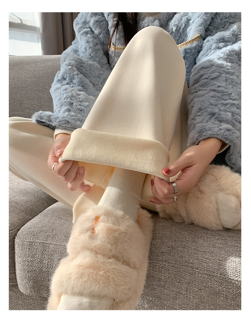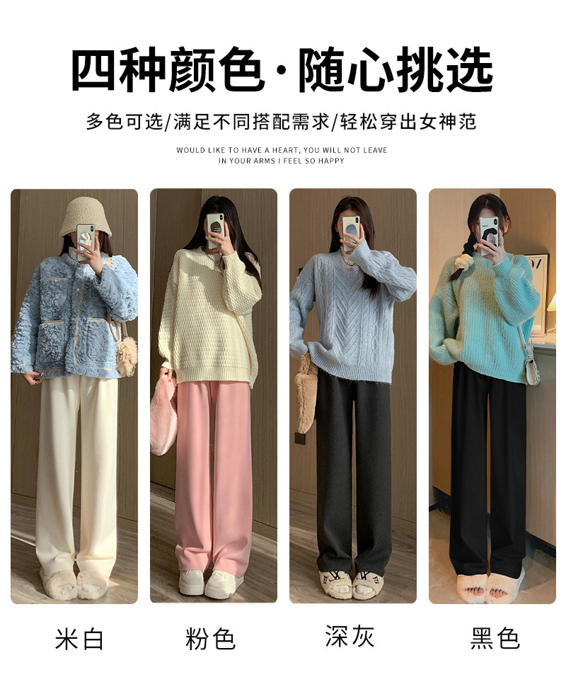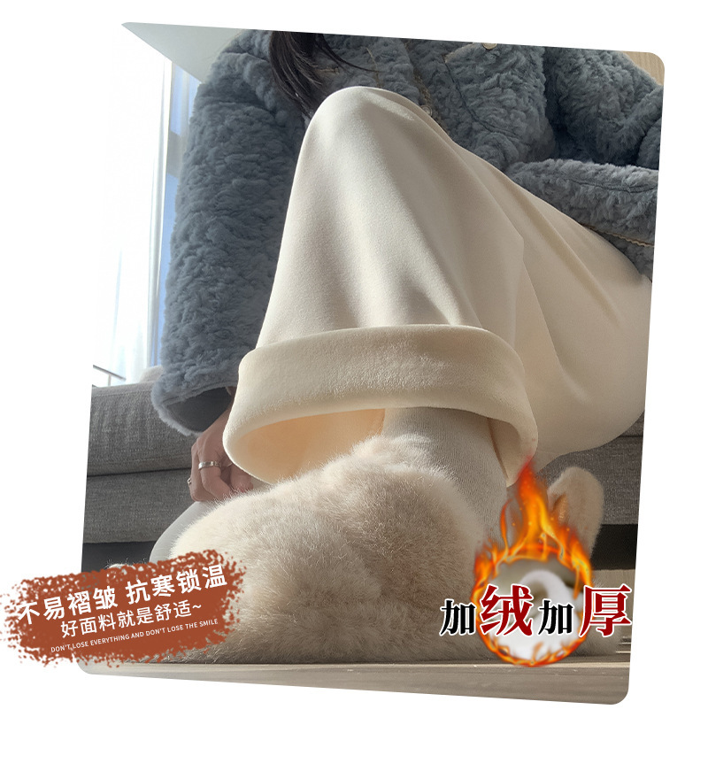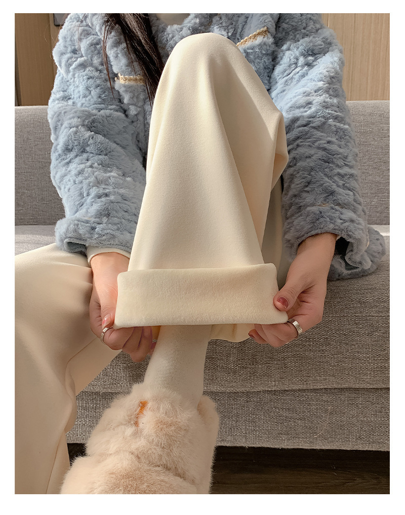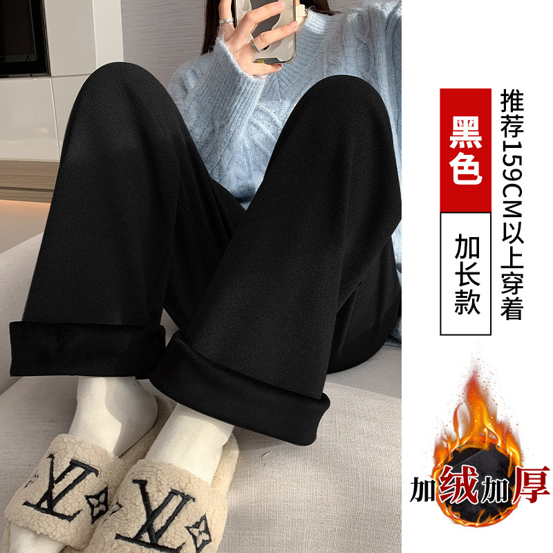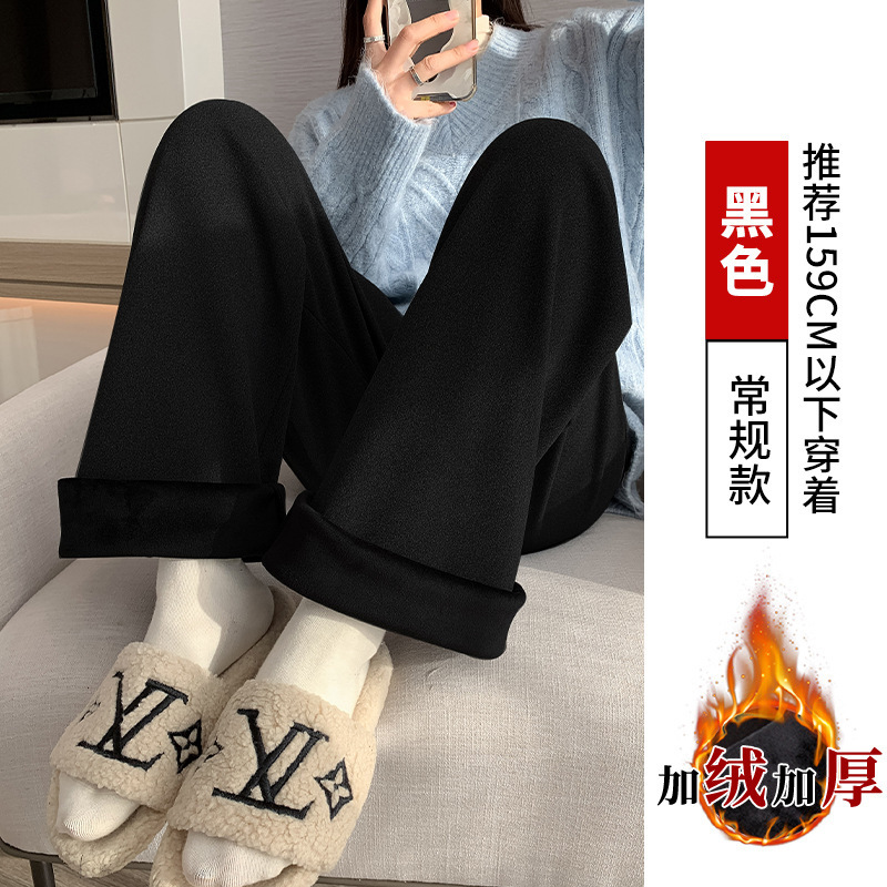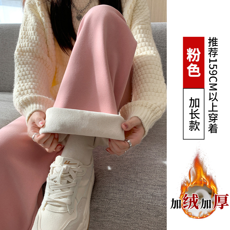 독일 벨벳 와이드 레그 팬츠 여성의 가을과 겨울 하이 웨이스트 느슨한 좁은 드레이프 바지 기모 스트레이트 캐주얼 찹쌀 바지