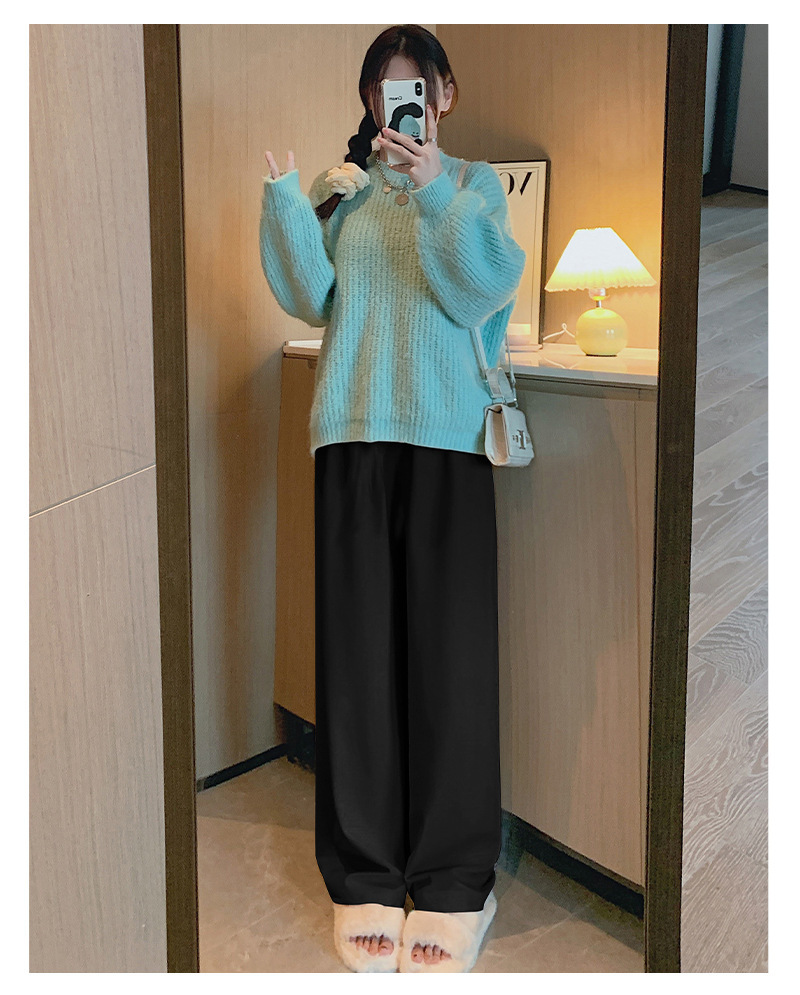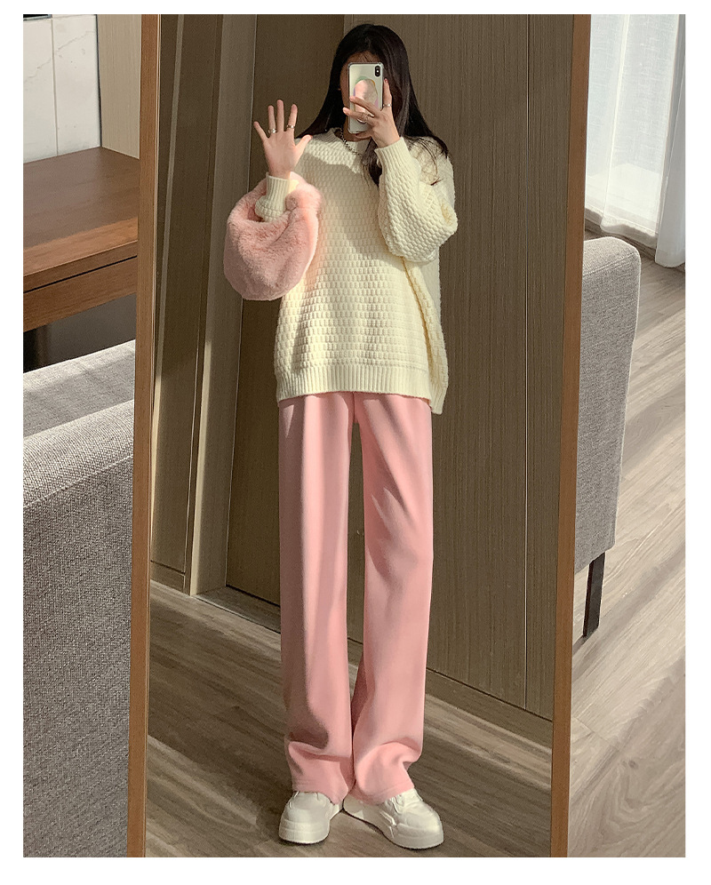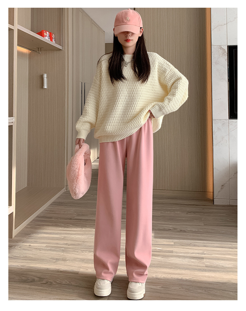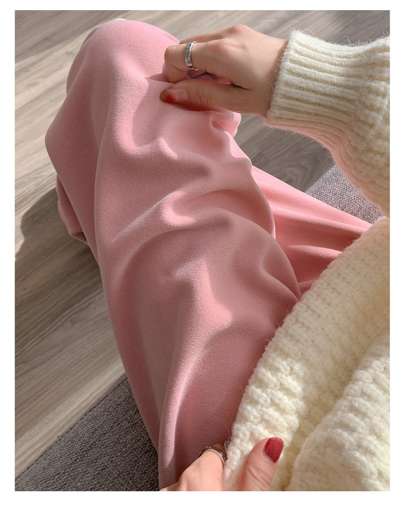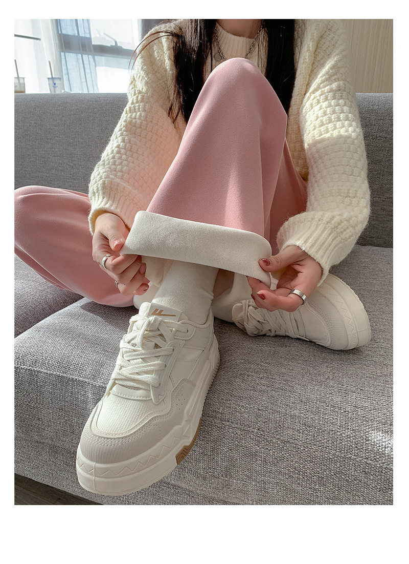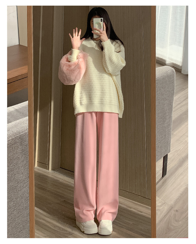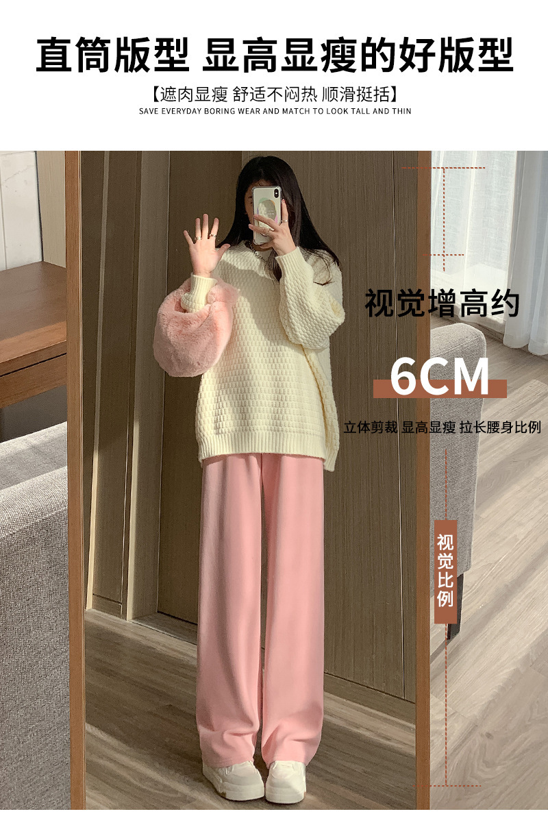 독일 벨벳 와이드 레그 팬츠 여성의 가을과 겨울 하이 웨이스트 느슨한 좁은 드레이프 바지 기모 스트레이트 캐주얼 찹쌀 바지