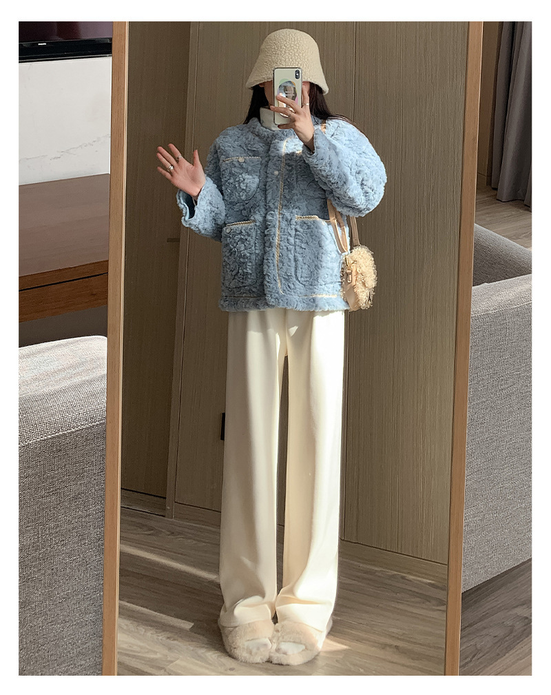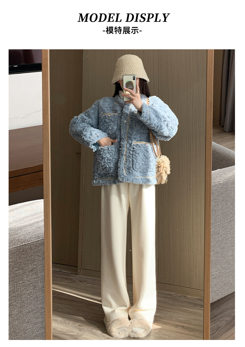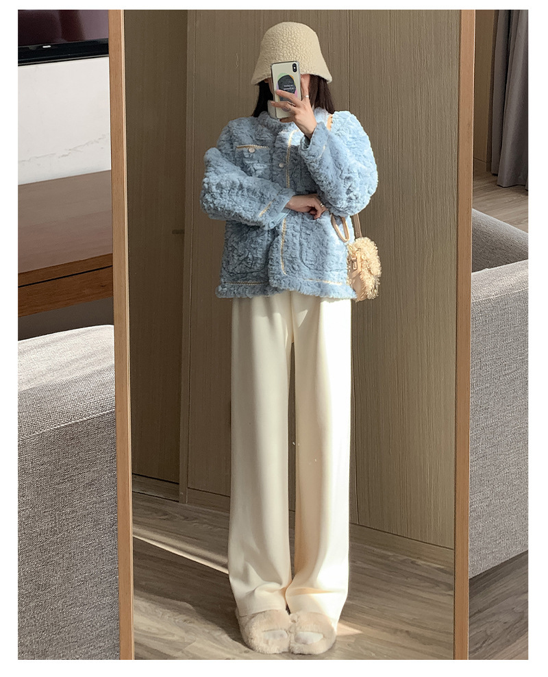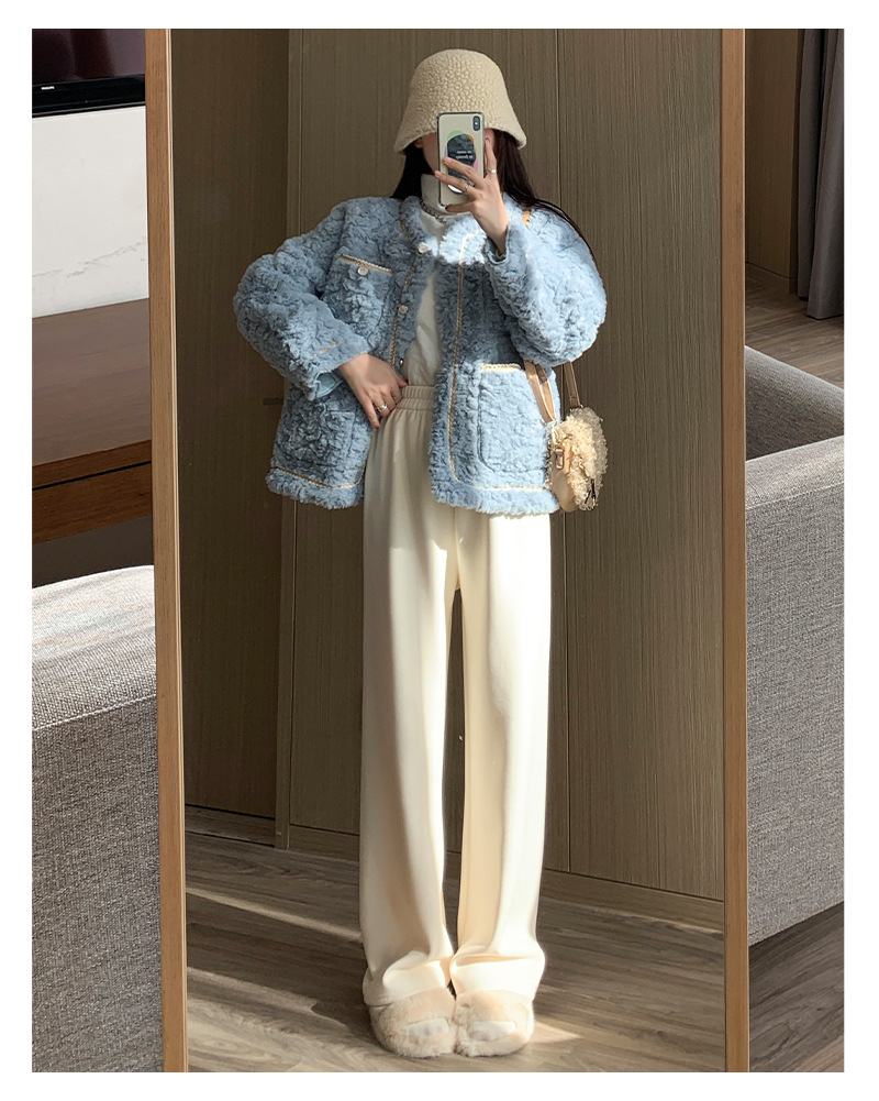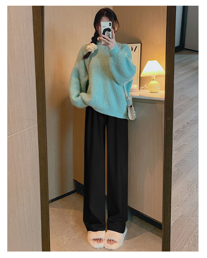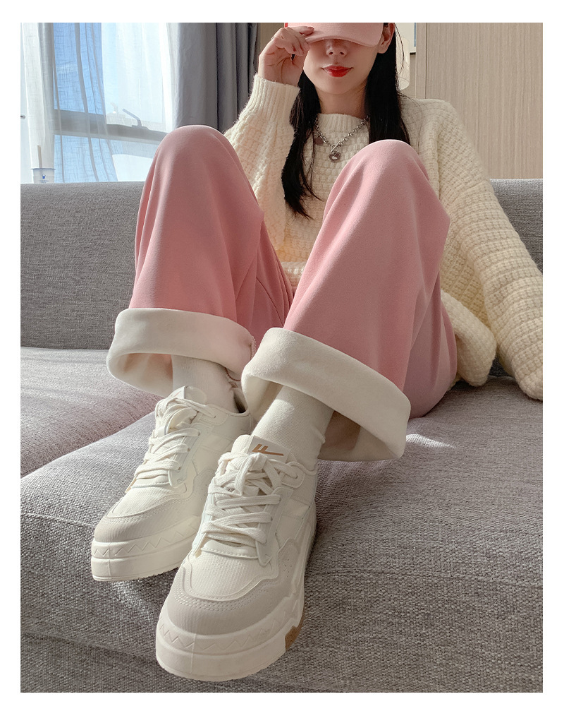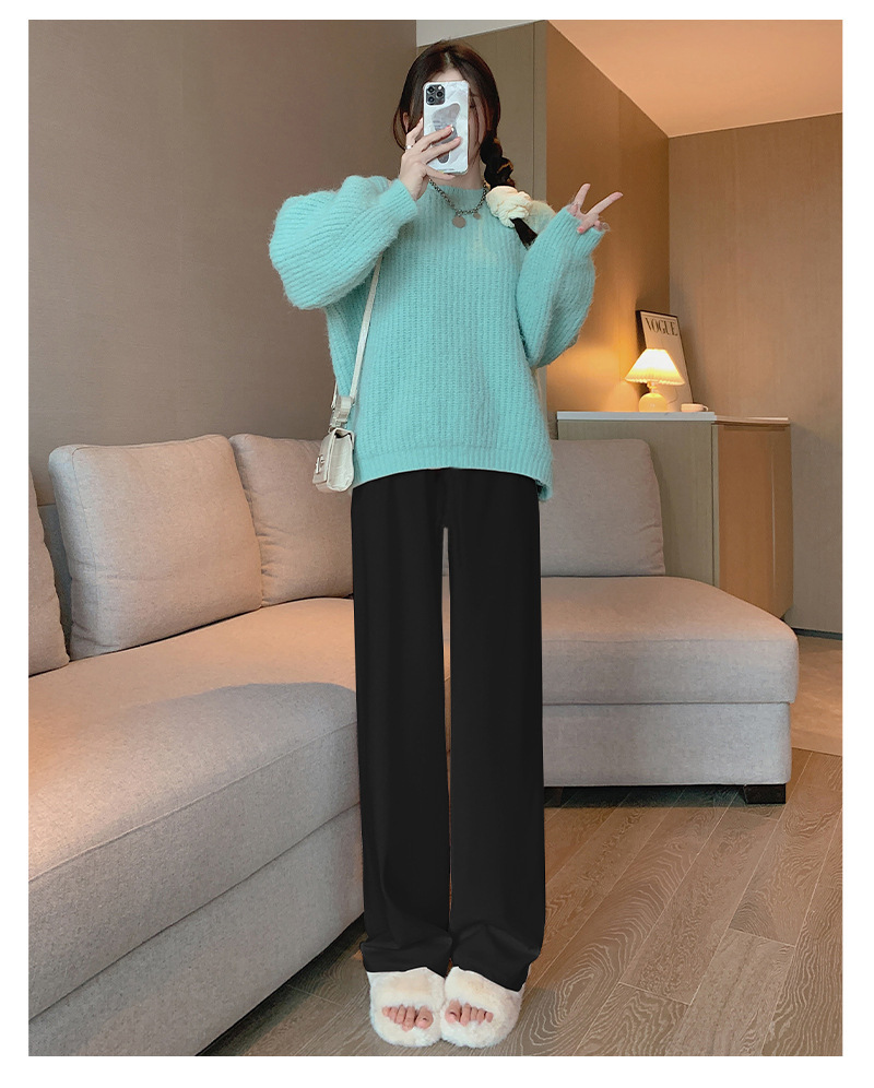 독일 벨벳 와이드 레그 팬츠 여성의 가을과 겨울 하이 웨이스트 느슨한 좁은 드레이프 바지 기모 스트레이트 캐주얼 찹쌀 바지