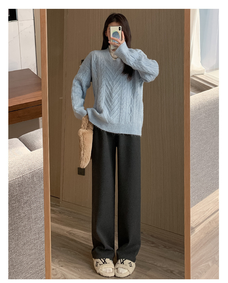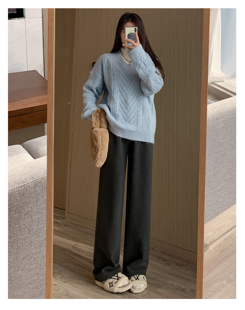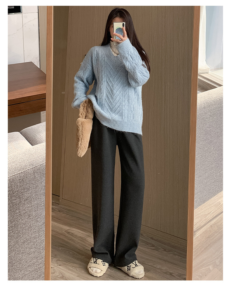 독일 벨벳 와이드 레그 팬츠 여성의 가을과 겨울 하이 웨이스트 느슨한 좁은 드레이프 바지 기모 스트레이트 캐주얼 찹쌀 바지스토어 가기