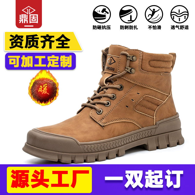 하이탑 노동 보호 신발 남성용 안티 스매싱 및 피어싱 방지 스틸 헤드 내마모성과 편안한 경량 겨울 안전 보호 코튼 부츠 크로스 보더스토어 가기