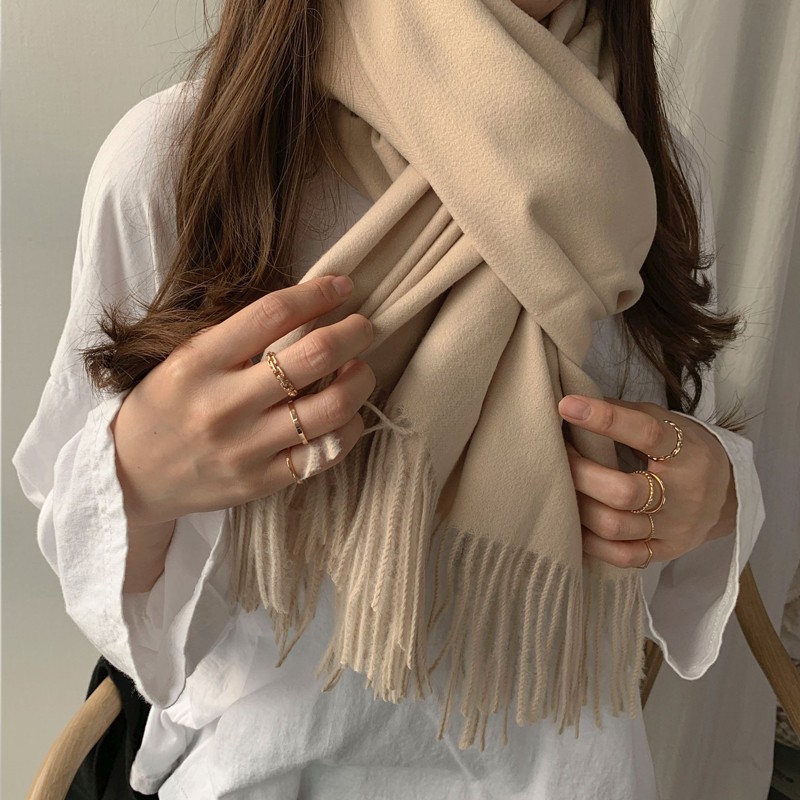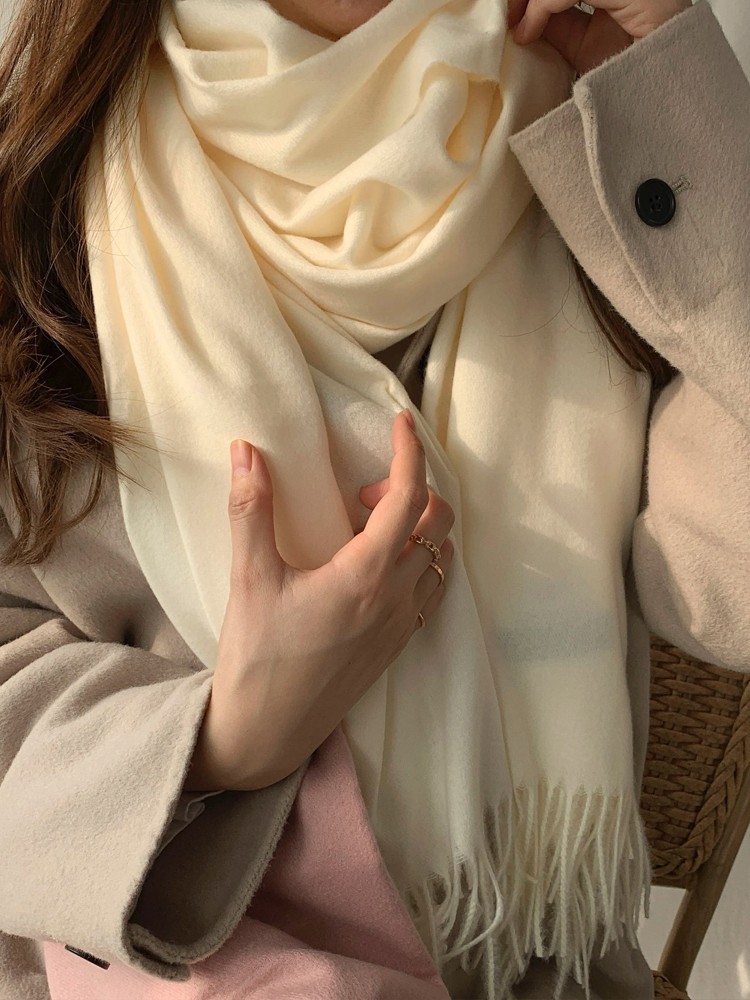 2025년 신상 단색 스카프 여성용 가을 겨울 다용도 고급스러운 숄 모조 캐시미어 화이트 대형 두꺼운 목도리스토어 가기