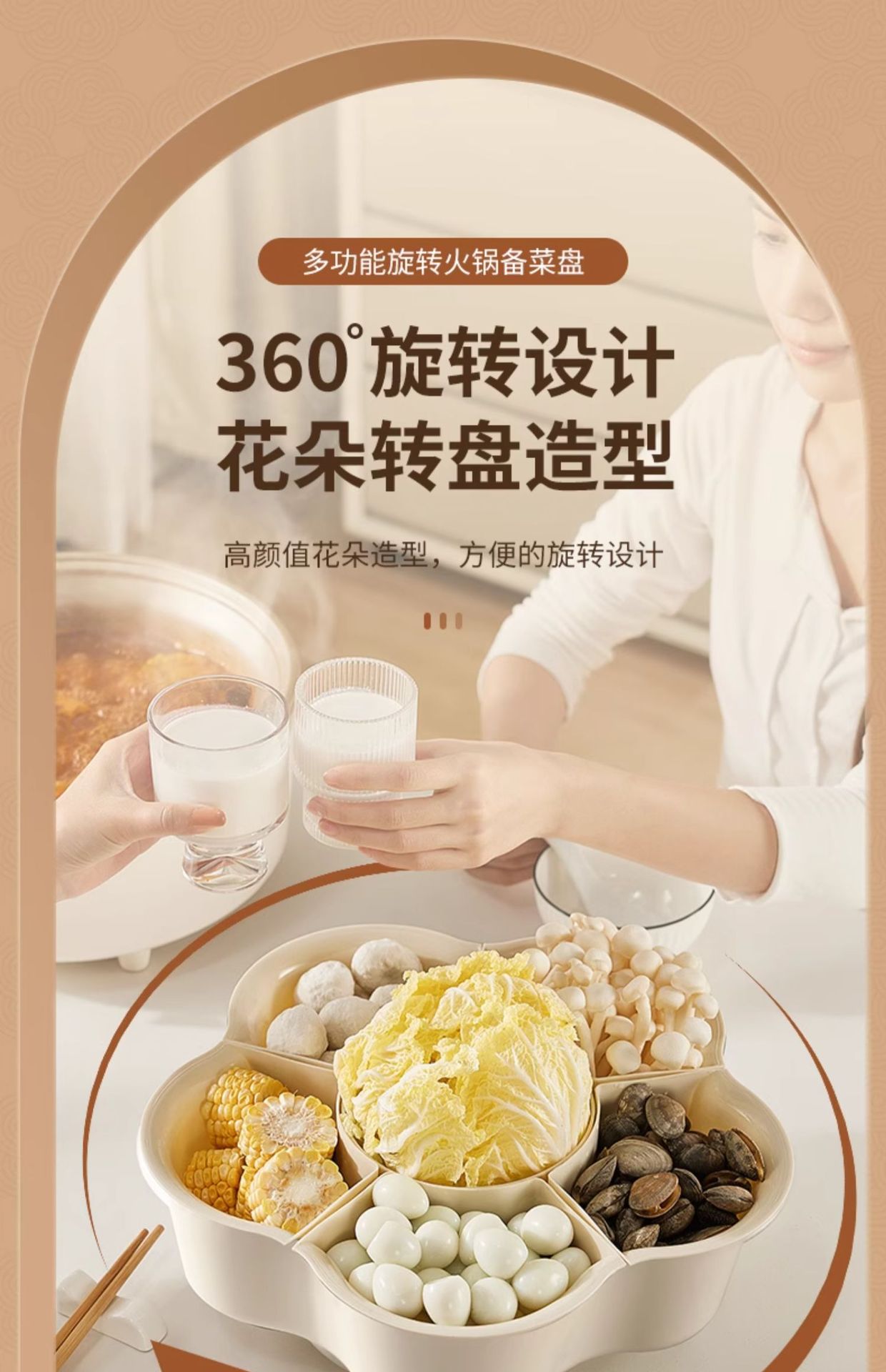 • 업그레이드-초대형 6 그리드 회전식 플래터 (크림)