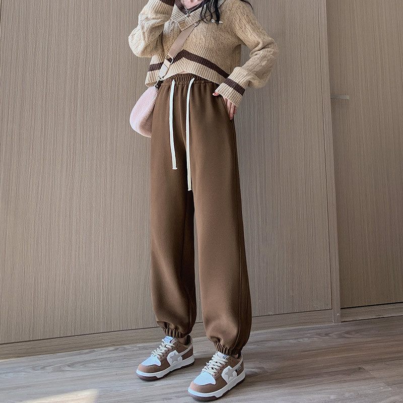 여성용 짙은 회색 레깅스 스타일 스포츠 팬츠 2025 가을 겨울 신상 기모 안감 루즈핏 드레이프 슬림핏 캐주얼 바지 방풍 팬츠스토어 가기