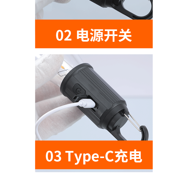 크로스 국경 새로운 TYPE-C 충전식 전구 야외 텐트 후크 캠핑 조명 분위기 조명 야간 시장 마구간 전구스토어 가기