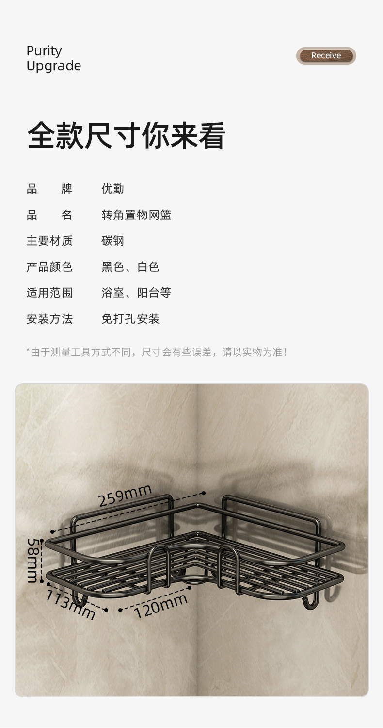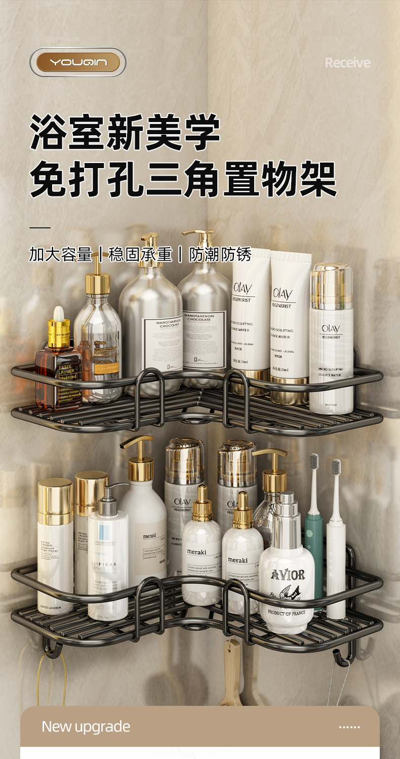 욕실 주방 수납 랙 코너 삼각형 조미료 랙 욕실 벽 수납 랙 선반 펀치 프리 벽걸이 형