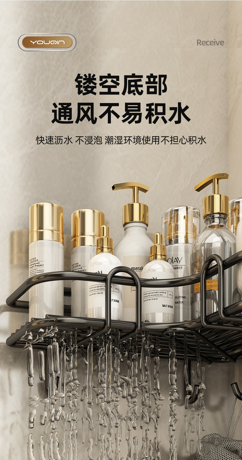 • 욕실 코너 랙-2 개의 후크가있는 블랙 대형 더블 레이어