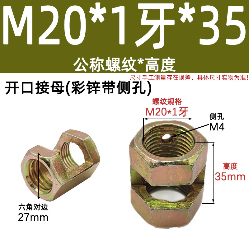 • 개방형 암 M10*1 치아 - M20*1.75 치아*35 색상 아연(측면 구멍 포함)