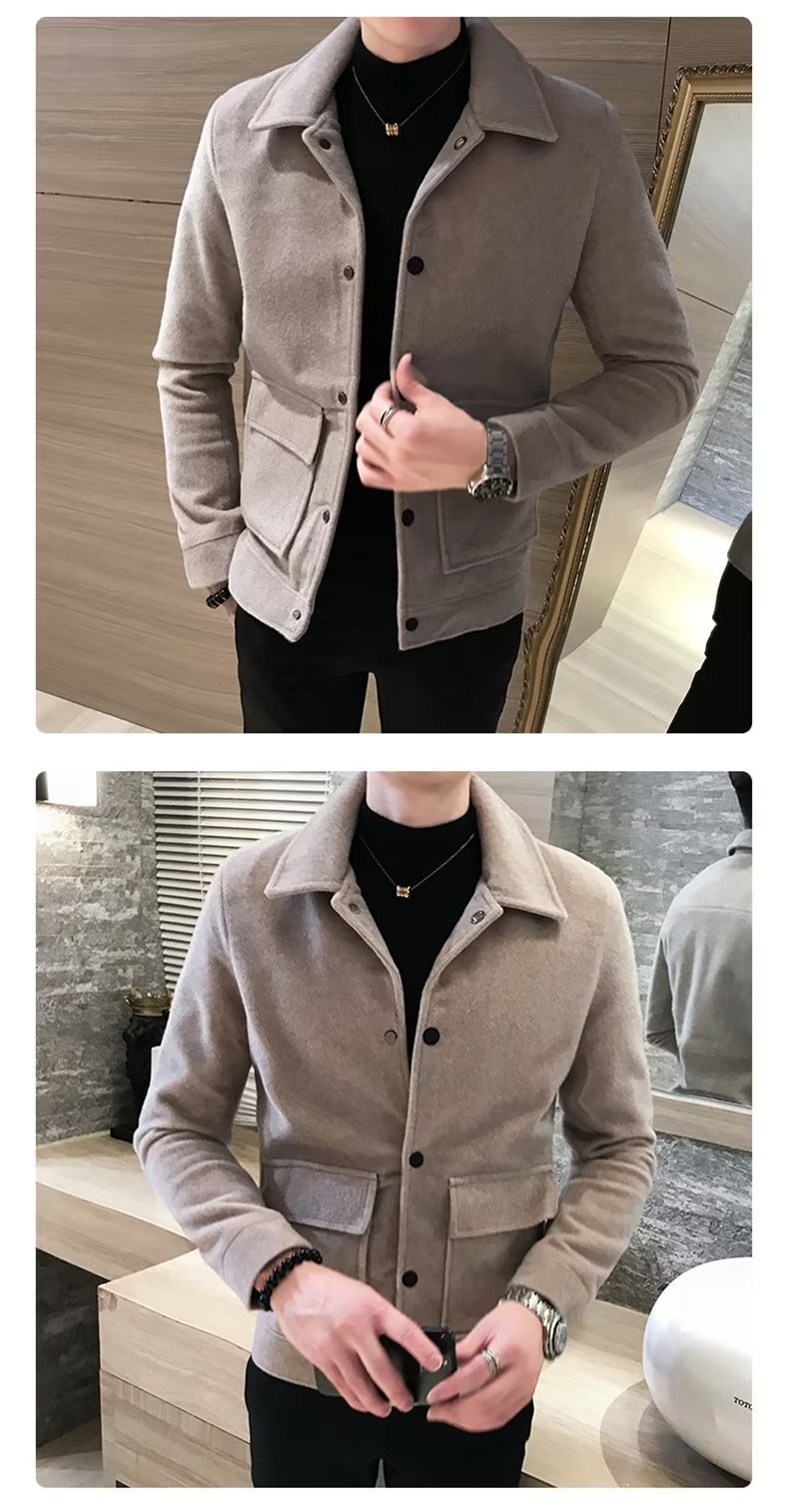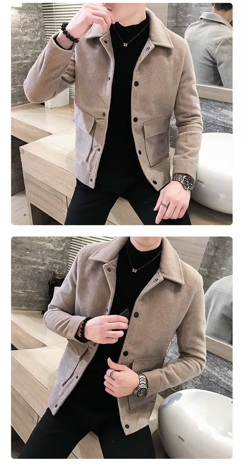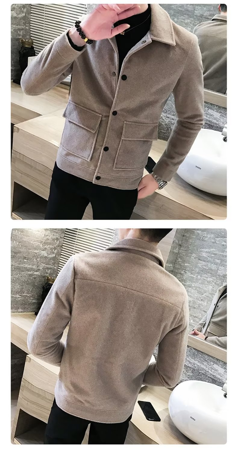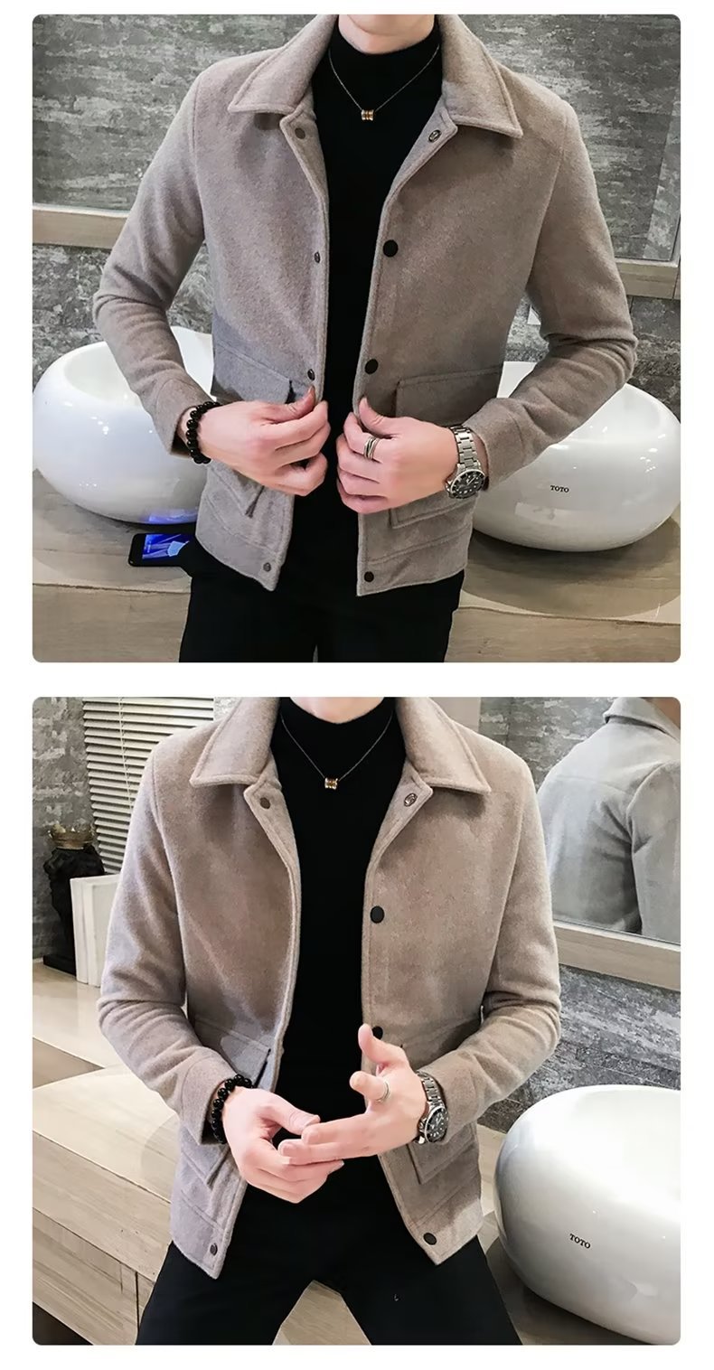 모직 재킷 남성 가을과 겨울 영국식 두꺼운 옷깃 유행 모든 경기 한국식 모직 재킷 짧은 정신